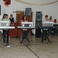 A zeneiskolában elektromos zongora tagozaton tanuló jelenlegi és egykori tanítványaink Csirmaz Klára, Tóth Evelin, Kurucz Kíra, Gáspár Sarolta, Erős Lúcia, Vámos Gergő modern slágereket adtak elő. Betanította Panyiné Cserpák Tünde tanárnő.