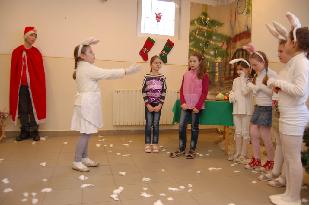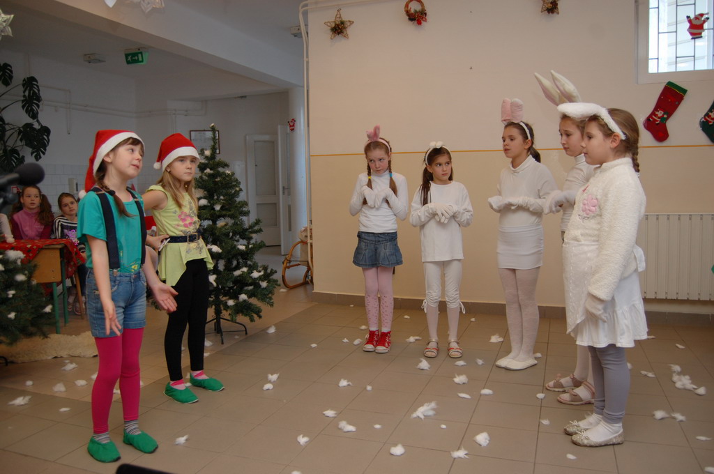 Szent Miklós ünnepéről is megemlékezett iskolánk december 6-án. A 3.a és 3.b osztály tanulói vidám táncos, verses, zenés műsort adtak elő. A nyuszis jelenet nagy sikert aratott a nézők körében.
