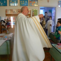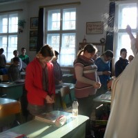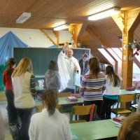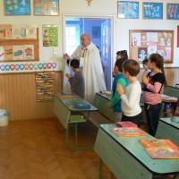 A szentmise után a plébános atya iskolánk osztálytermeit és tanári szobáját végigjárva minden osztályt megszentelt, majd felírta iskolánk ajtajára a 20 + G + M + B + 14 betűket, jelezve, hogy mikor volt utoljára megszentelve iskolánk.