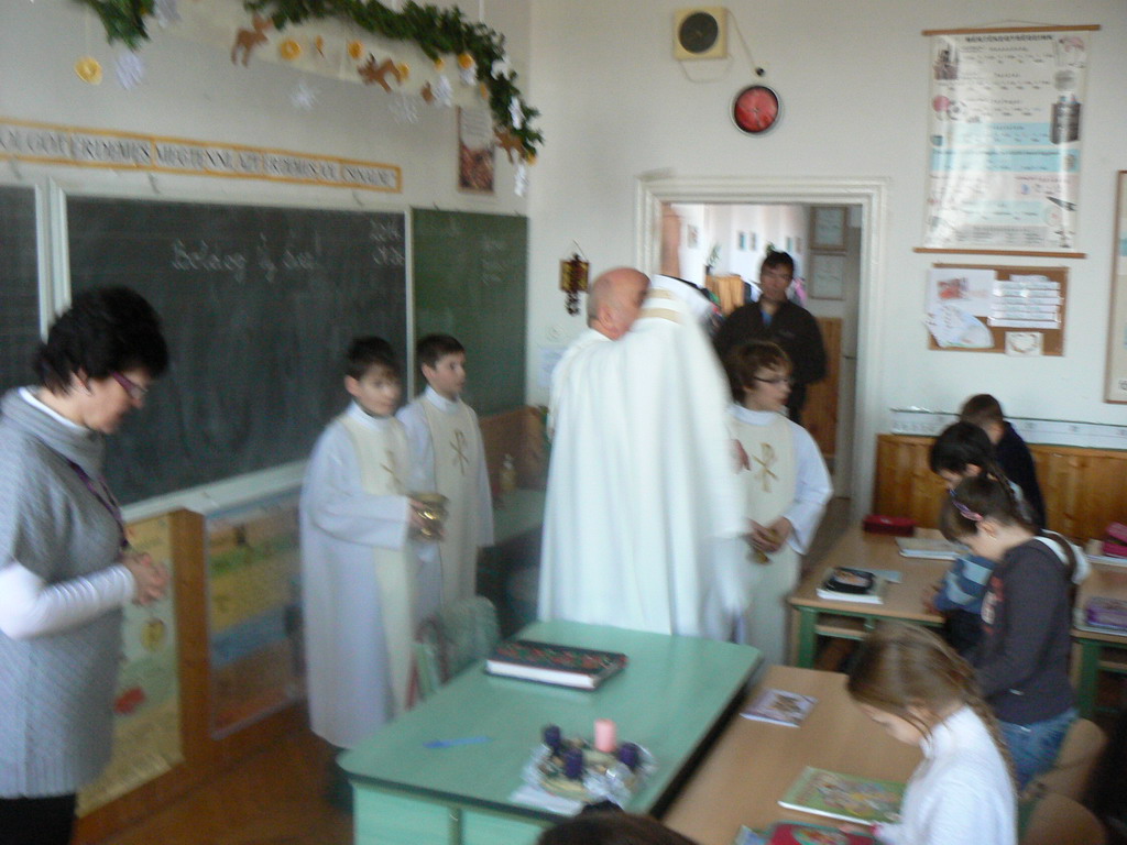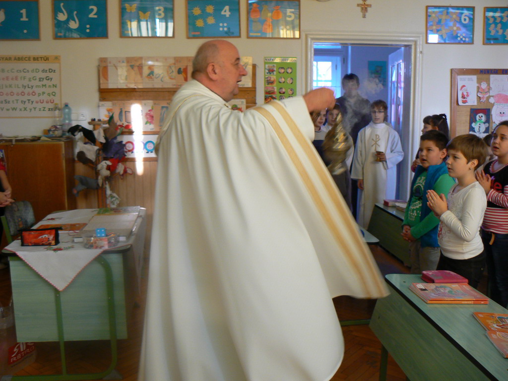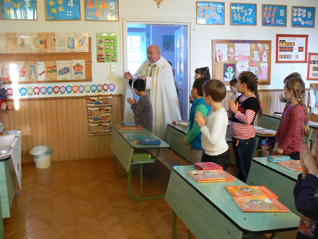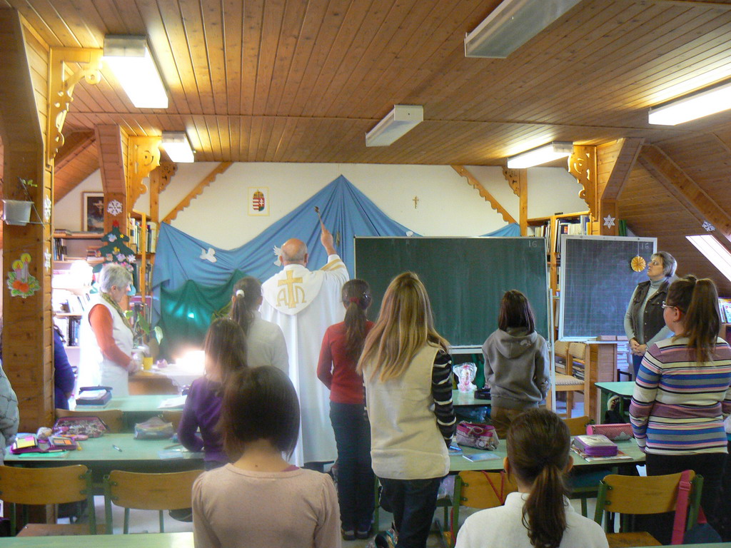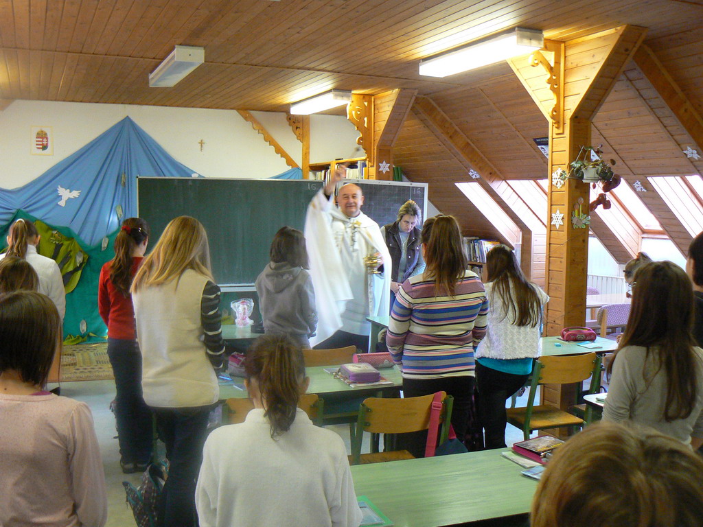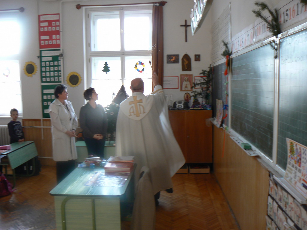 A szentmise után a plébános atya iskolánk osztálytermeit és tanári szobáját végigjárva minden osztályt megszentelt, majd felírta iskolánk ajtajára a 20 + G + M + B + 14 betűket, jelezve, hogy mikor volt utoljára megszentelve iskolánk.