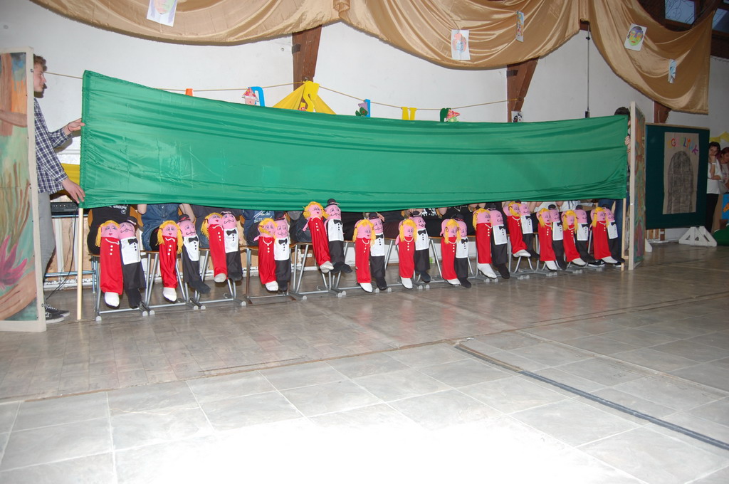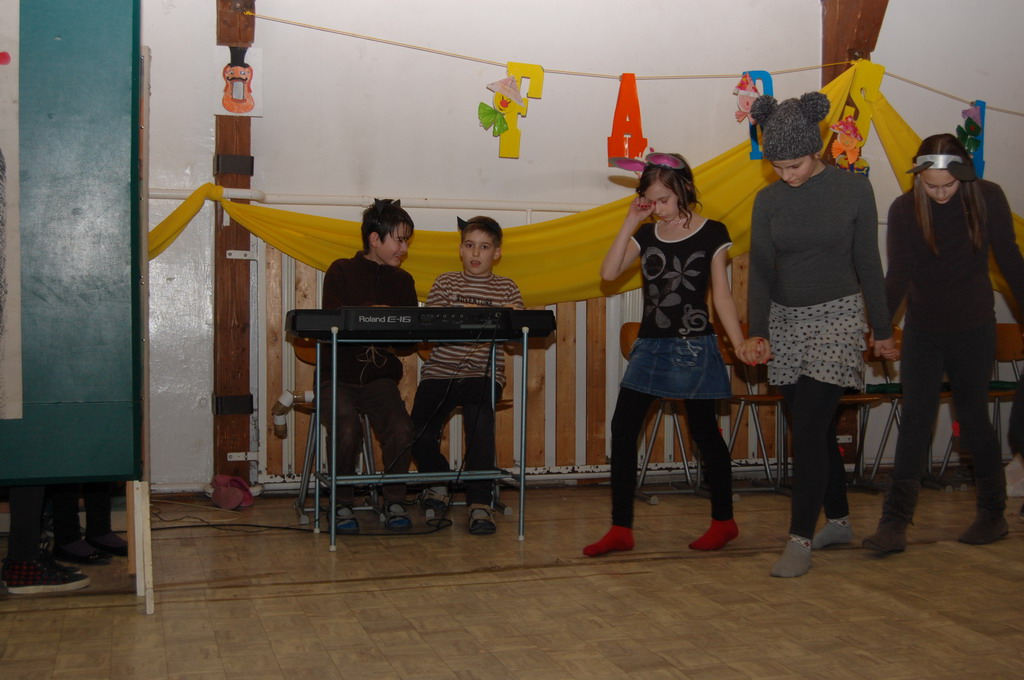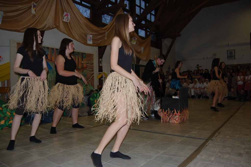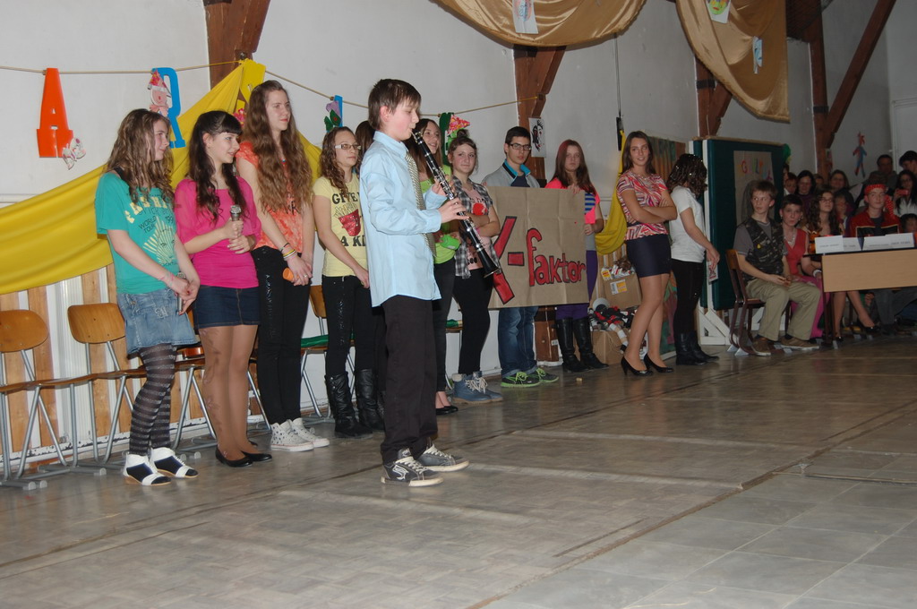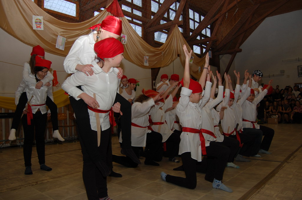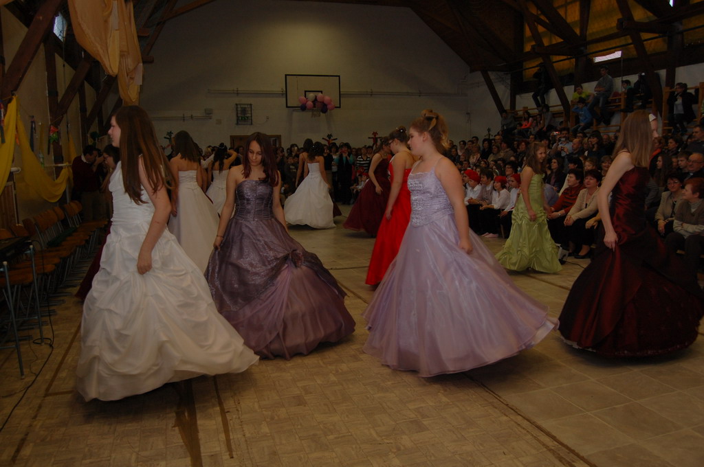 Az igazgató úr megnyitó beszéde után a 6. és 7. osztály társastáncosai gyönyörű ruhában angolkeringővel kezdték meg a szórakoztató jelmezes bemutatókat. Szinte minden felsős részt vett a vidám műsorban, melyben az osztályok jobbnál-jobb élménydús zenés jelenetet, paródiát, táncot, éneket adtak elő, a közönség (tanárok, szülők, kisdiákok) nem kis örömére. A farsangi karnevál első része társastáncosaink kör cha-chájával fejeződött be.