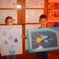 Ezekkel a fontos témákkal foglalkoztunk a hét során a napközisekkel. Kísérleteket, megfigyeléseket végeztünk, megismerkedtünk a víz tulajdonságaival. Meséken, történeteken keresztül megtanultuk a víz körforgását, ismeretterjesztő filmeket néztünk a környezetszennyezésről, a vizek védelmének fontosságáról. Vízzel kapcsolatos játékokat, énekeket, verseket tanultunk.Kézműves foglalkozásokon vízi növényeket, állatokat, közlekedési eszközöket készítettünk. Az elkélszült munkákat akvárium, társasjáték készítésére használtuk fel. Szerdán szavalóversenyt rendeztünk, ahol a vízről, vízi állatokról szóló verseket mutattak be a gyerekek. Ellátogattunk a szikvíz készítő üzembe, népszerűsítettük a vízivást.