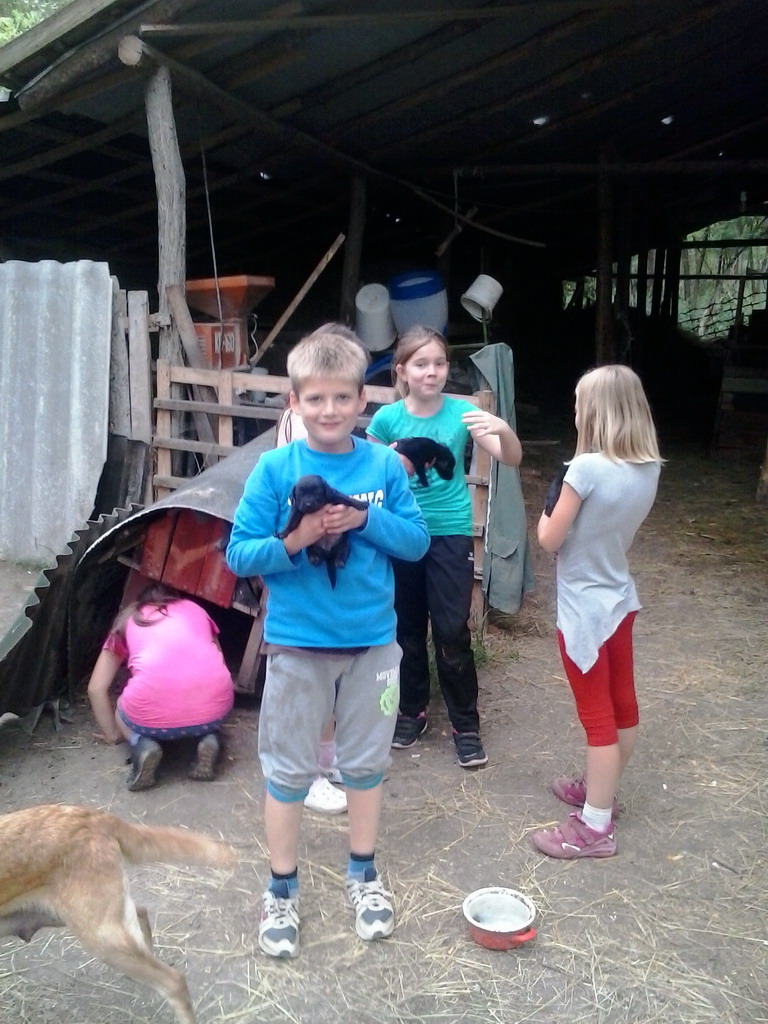 Pénteken már csak benn, a tábor területén játszottunk, versenyeztünk. Szerencsére hatalmas terület állt rendelkezésünkre, ahol rengeteg állat volt; lehetett tehenet fejni, sajtot készíteni, halastóban „keresgélni”, s focizni…