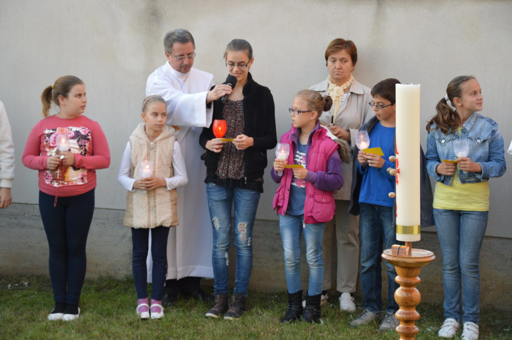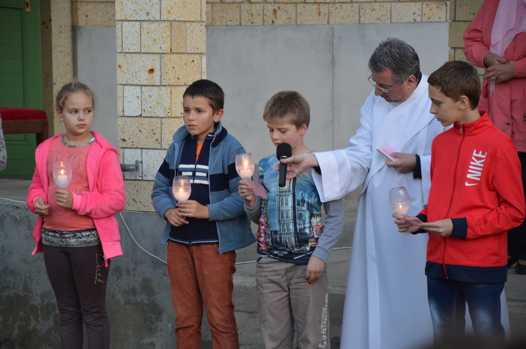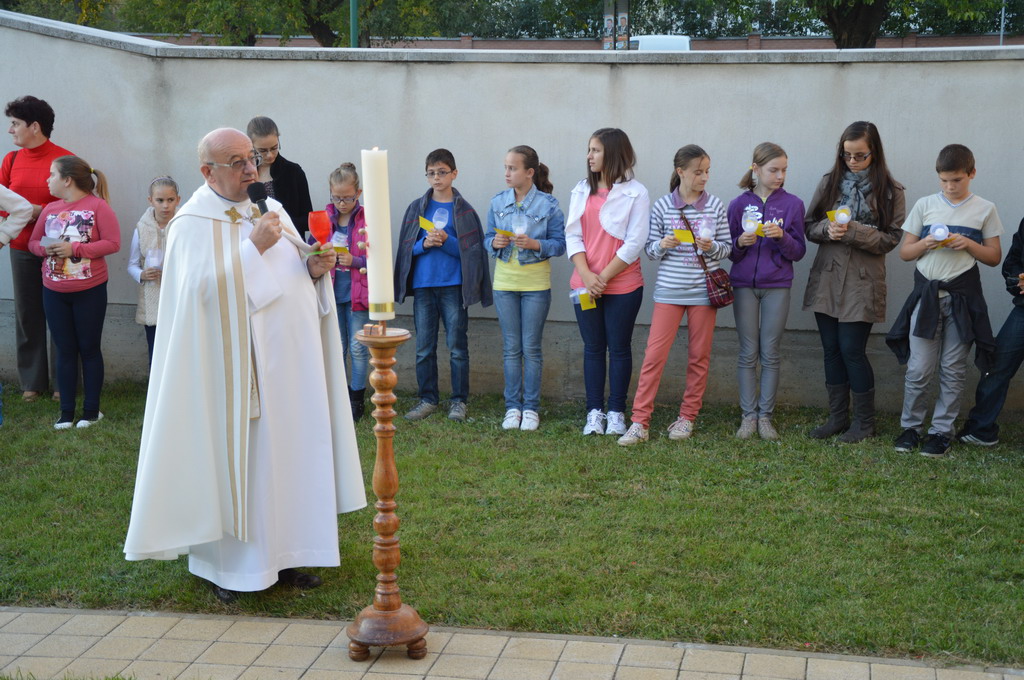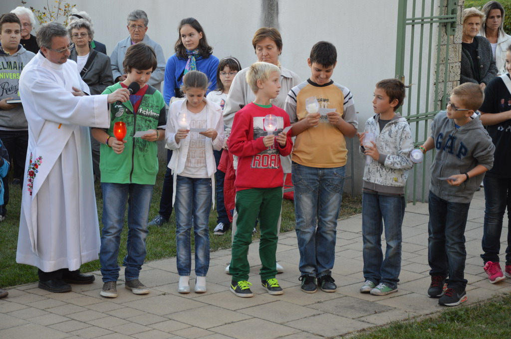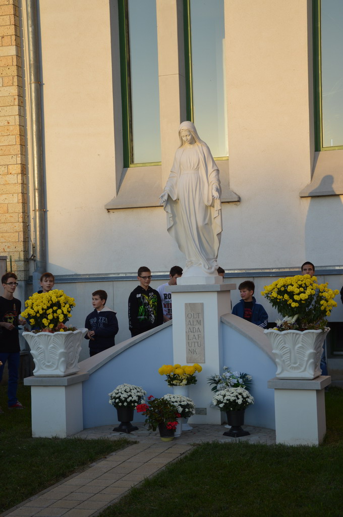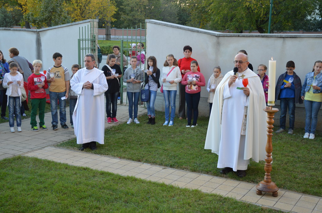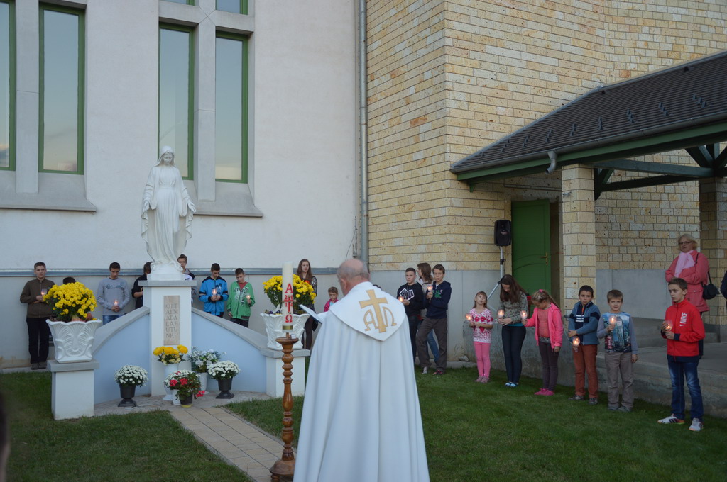 2014. október 14-én immár második alkalommal került sor a templomkertben a Mária-szobornál az esti rózsafűzér imádság közös elimádkozására Dr. Berkes László pápai prelátus, a Jézus Szíve templom plébánosa vezetésével. Iskolánk diákjai mécsessel a kezükben mondtak egy-egy imát.