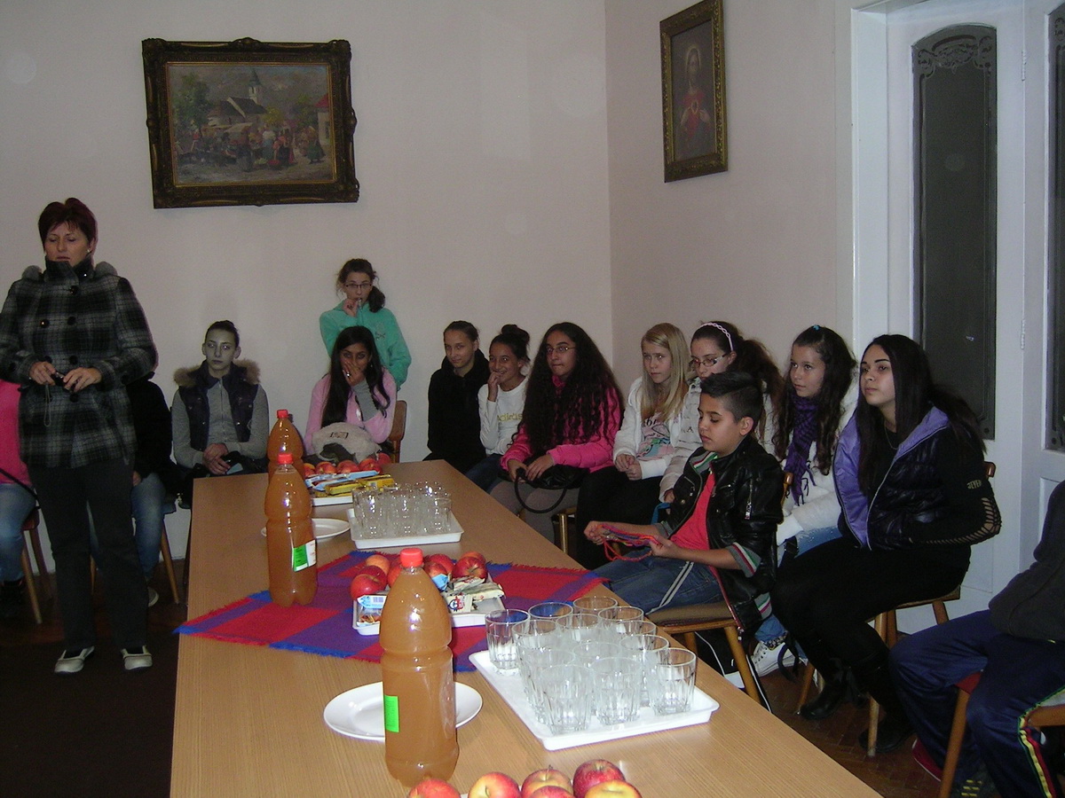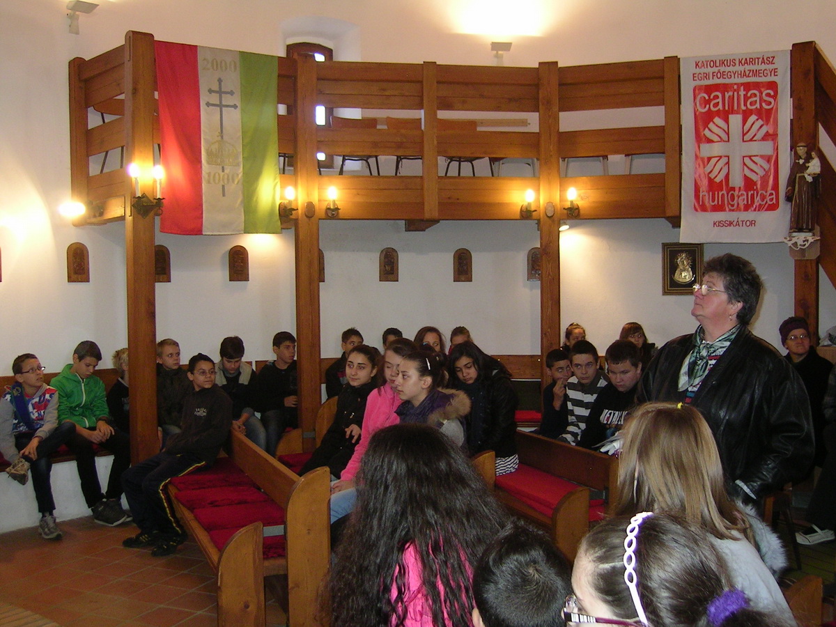 Ebéd után a Karitász Házba látogattunk el, ahol átadtuk adományainkat. A helyi csoport vezetője, Marika néni beszélt a Karitász működéséről, feladatairól.