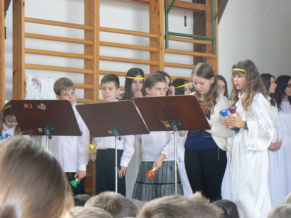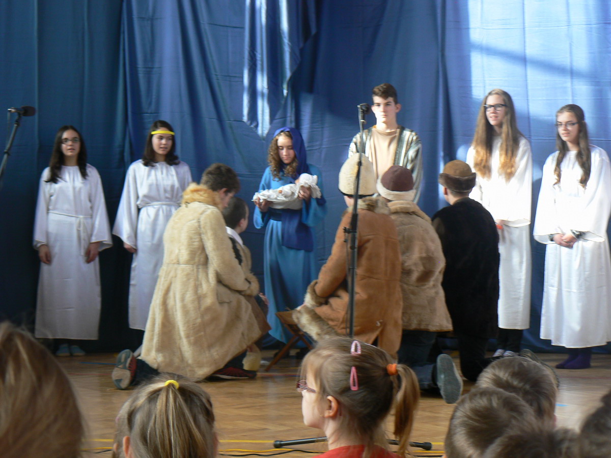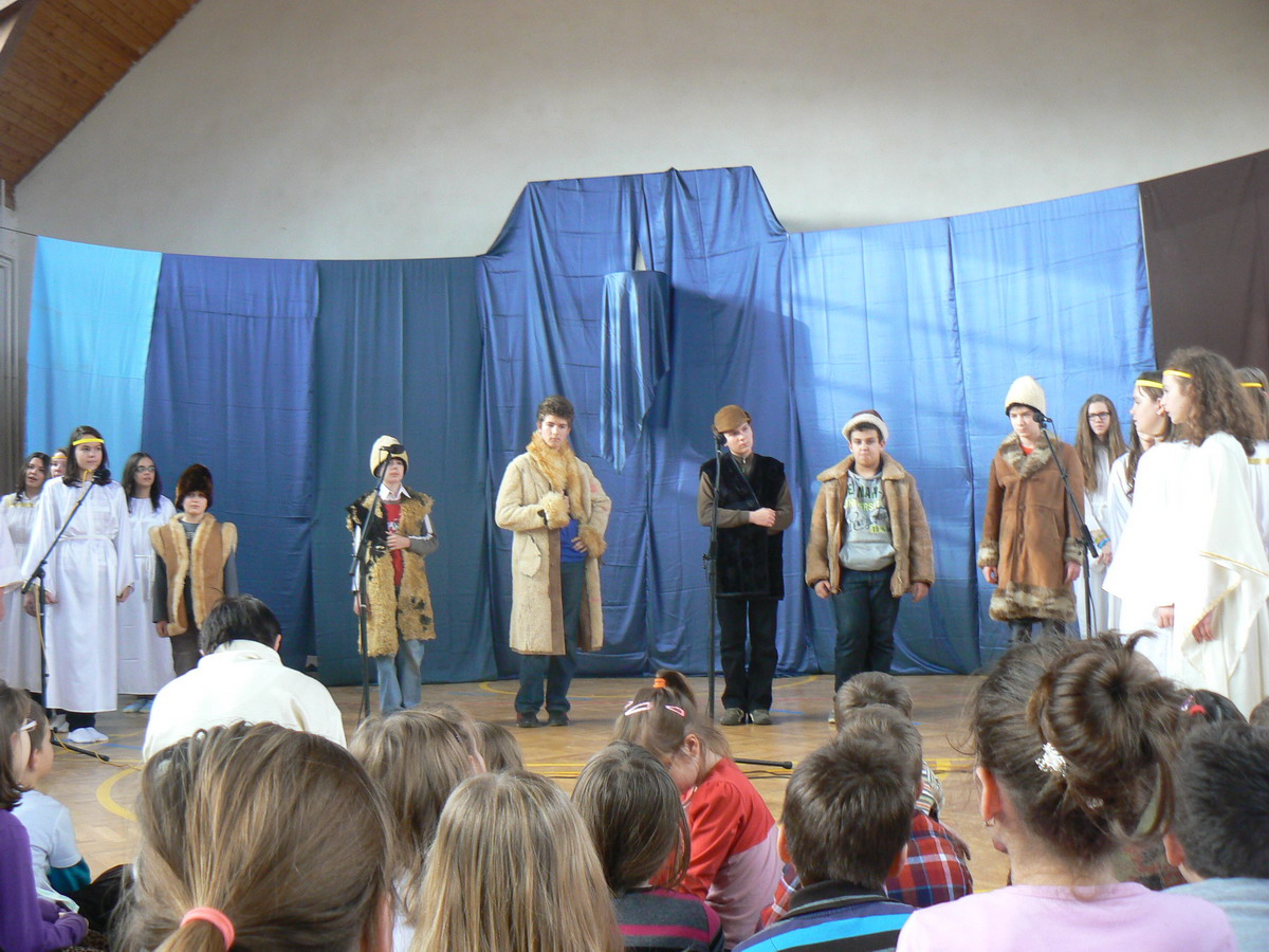 Iskolánk karácsonyi ünnepségét 2014. december 19-én, pénteken, 11 órától tartottuk a tornateremben. Ezen betlehemes műsort láthattunk iskolánk diákjainak előadásában, melyet Bak Mária, iskolánk pedagógusa tanított be.