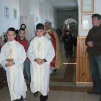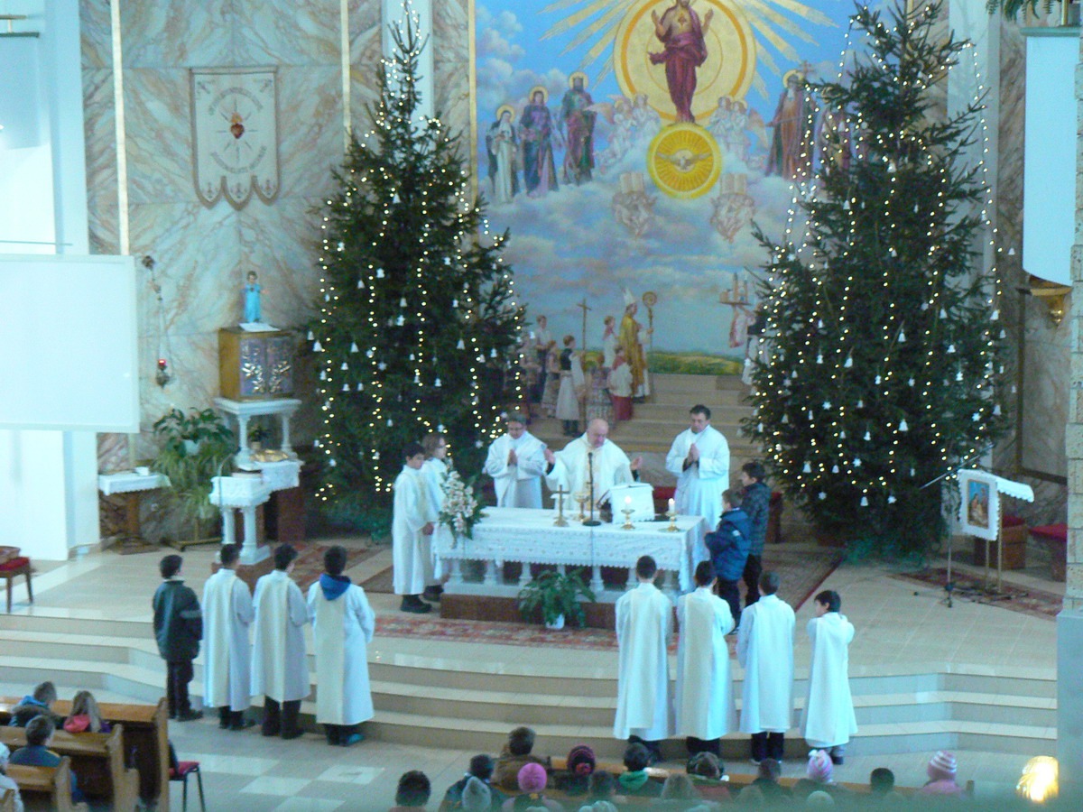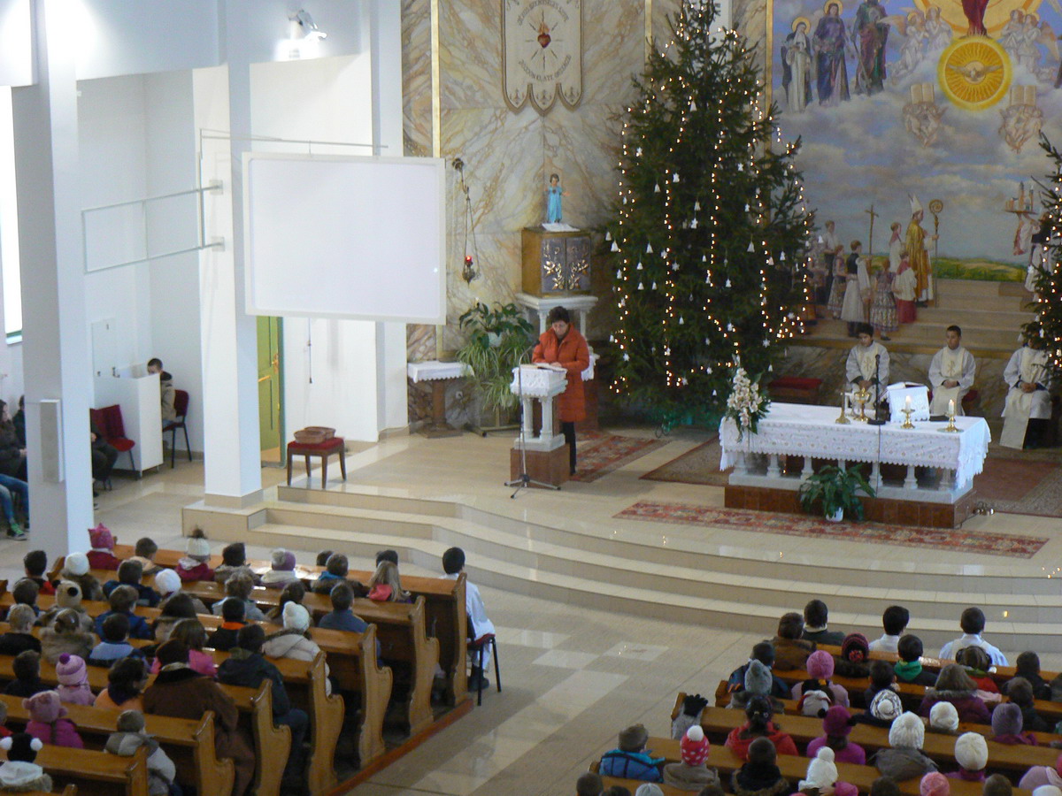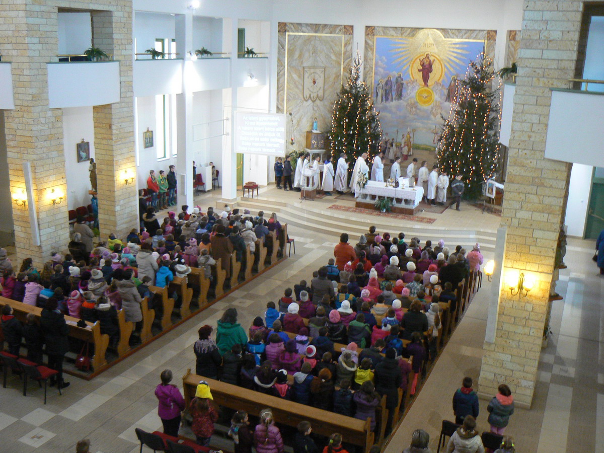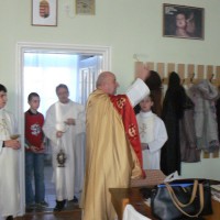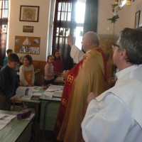Iskolánkban is ennek megfelelően ünnepeltük meg a napot. Reggel 8 órakor szentmisével kezdtük a napot dr. Berkes László pápai prelátus, a Jézus Szíve templom plébánosa celebrálásával. Ezután a plébános atya körbejárta az iskolát, és a frissen szentelt szenteltvízzel megszentelte az osztálytermeket.