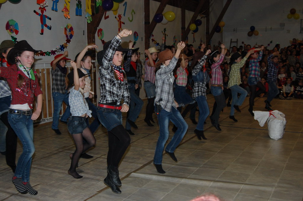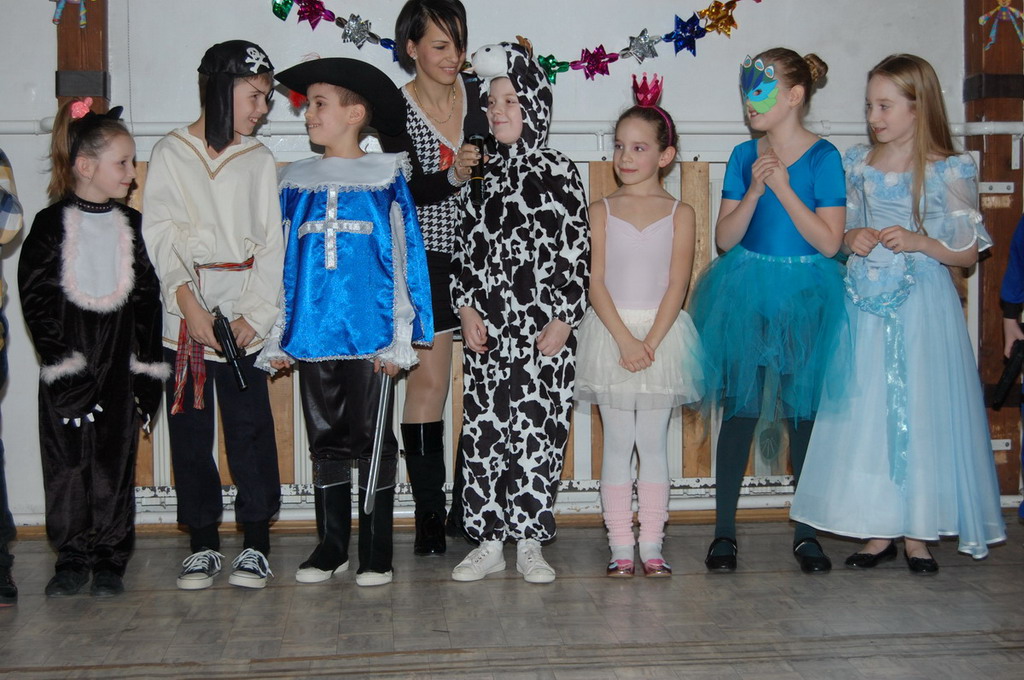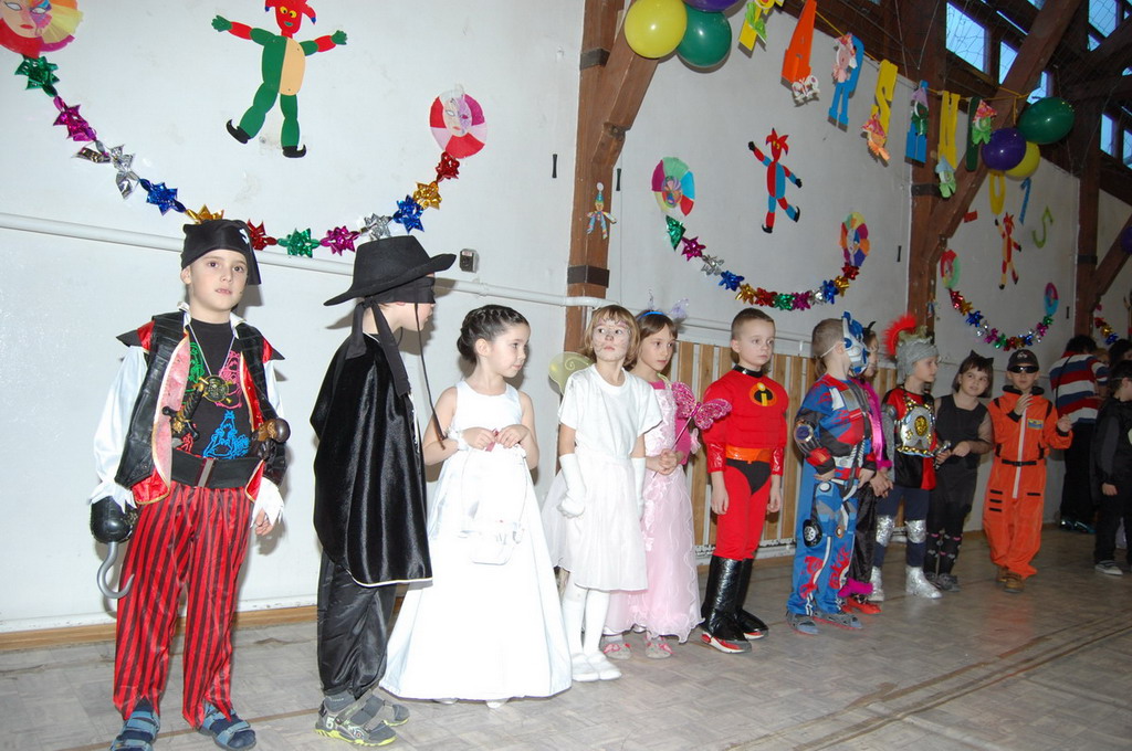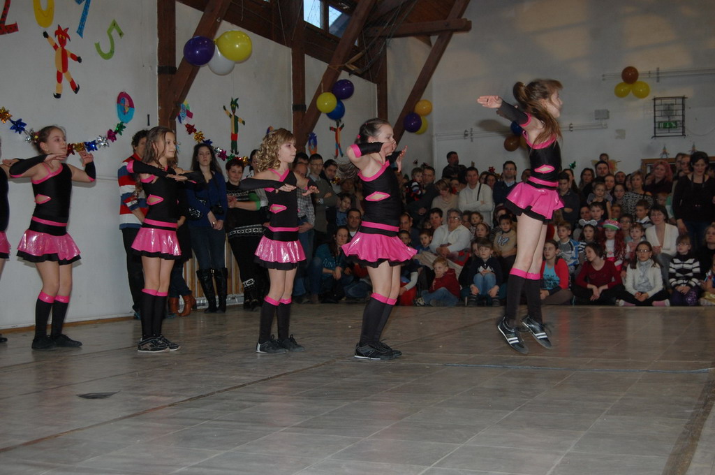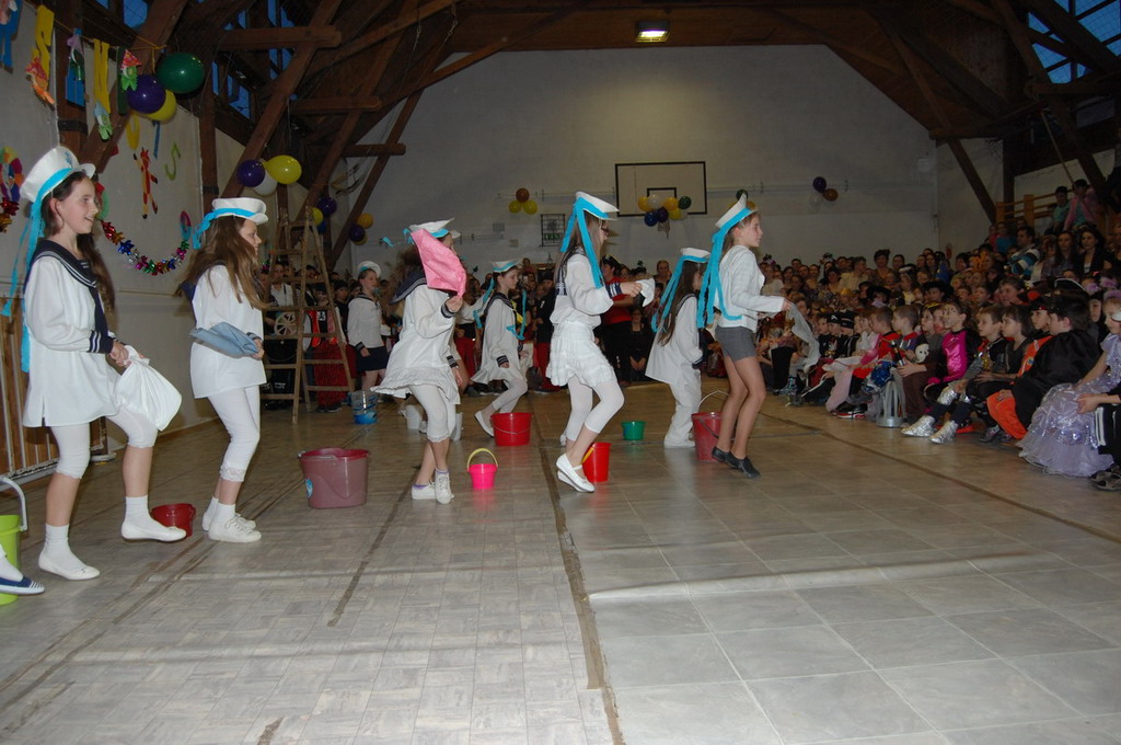 Bemutatták táncukat a rocky-sok, néhány 2.c osztályos tanuló farsangi verset mondott és természetesen nem maradt el az osztályok felvonulása sem. a színes kavalkádot a két 4. osztály táncos produkciója zárta. Az A osztályosok kalóznak-matróznak öltöztek, míg a B osztályosok cowboy lányoknak-fiúknak. A tánc egészen fél 7-ig (az áramszünetig) tartott.