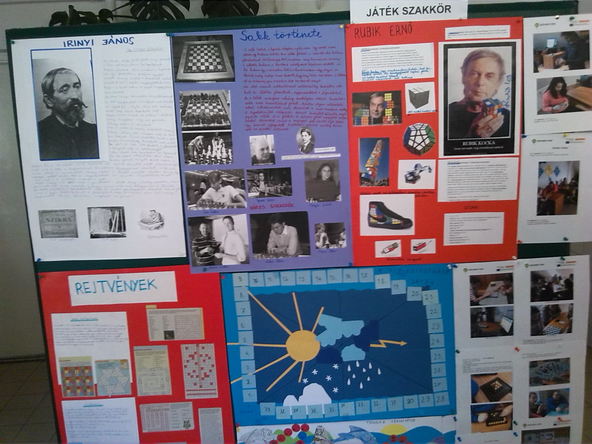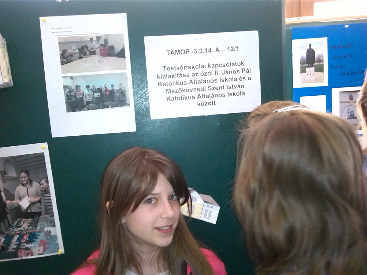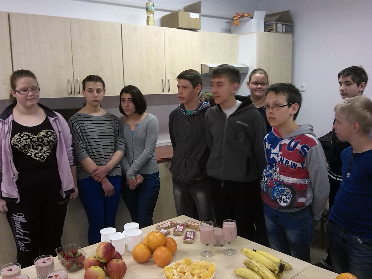 A 16 hónap alatt projekt ill. csoportmunkákban készült munkákból kiállítást készítettünk az iskola ebédlőjében. Az utolsó alkalommal gyümölcsturmixitalt készítettünk, s egy jelképes koccintással zártuk le a foglalkozásokat. Összejövetelünkre Nyeste István igazgató urat is meghívtuk, közösen elevenítettük fel a jól sikerült foglalkozásokat, együttléteket.