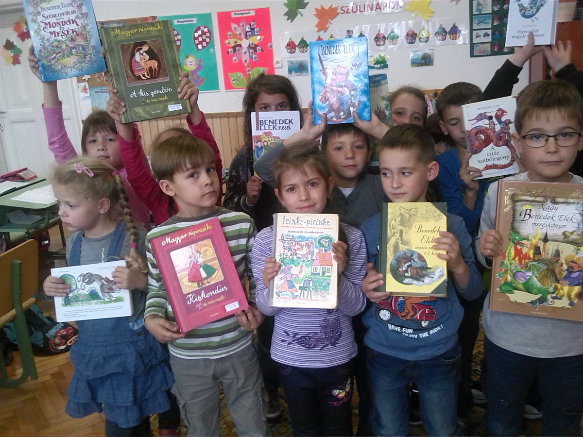 Az 1.b tanulóinak mesedélutánt szerveztünk, ahol a szülők meséltek a gyerekeknek. Benedek Elek meséskönyveiből kiállítást készítettünk, így délutánonként lapozgathatják a szebbnél-szebb kiadványokat.