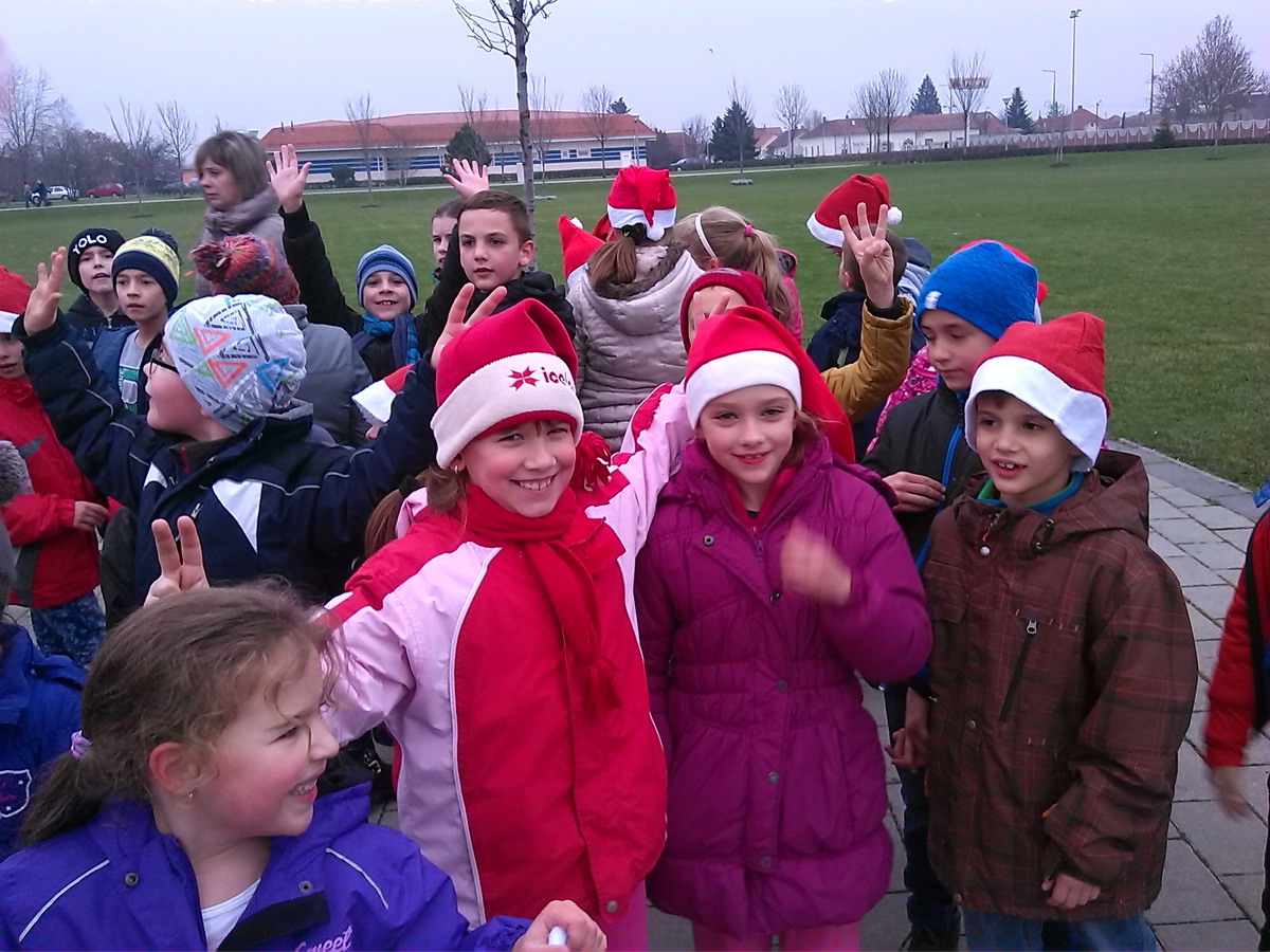 December 3-án (csütörtökön) a tanítás után a gyerekek beöltözhettek pirosba, jelezve a Mikulás várást. Gábor bácsi rövid bemelegítést tartott, majd elindultak a gyerekek a tó körül futni.