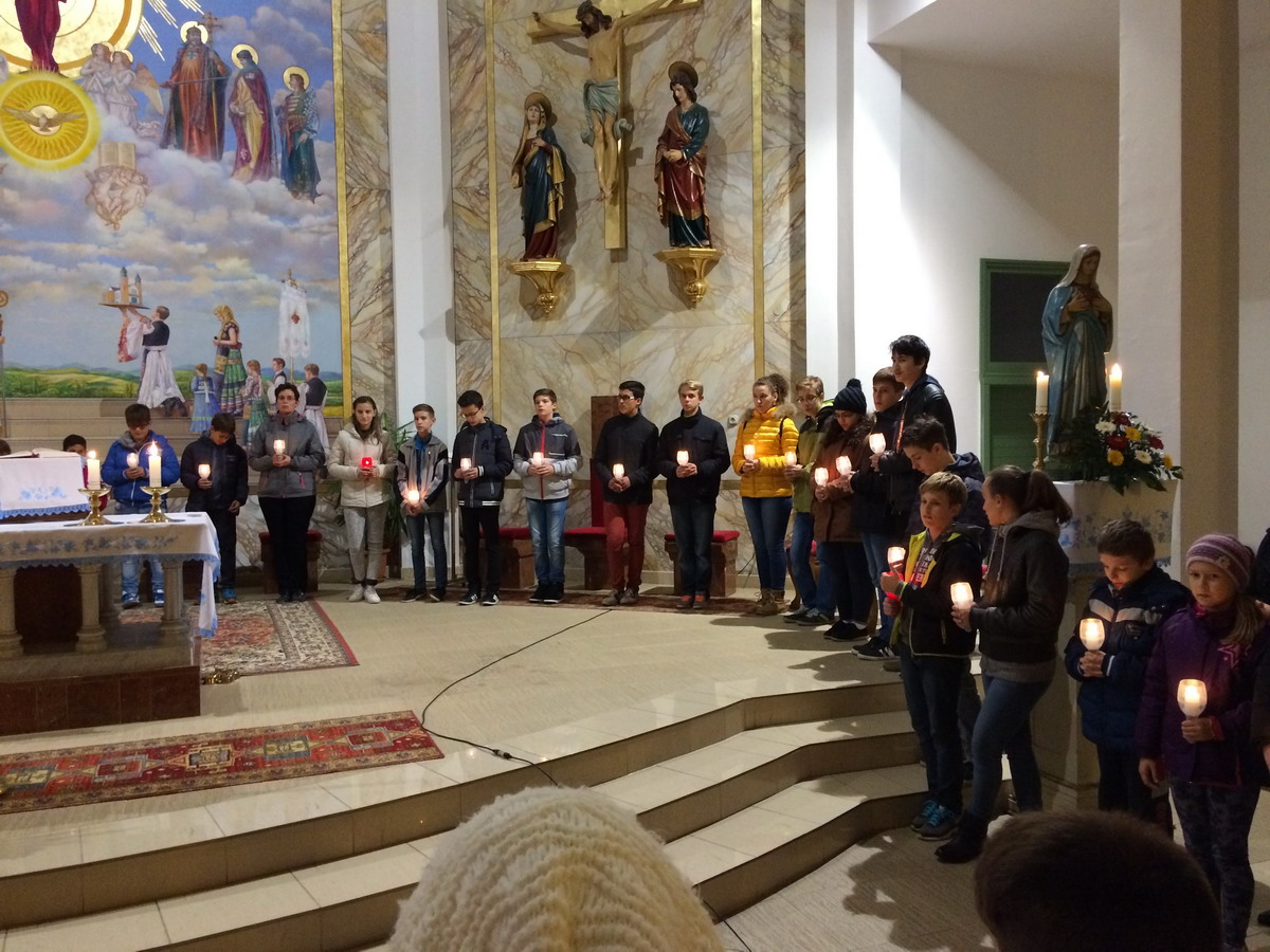 A negyed 6-kor kezdődő imán diákok, szülők, tanárok és a templomba járó hívek vettek részt. Minden egyes Üdvözlégyet más-más mondott, kezében mécsessel.