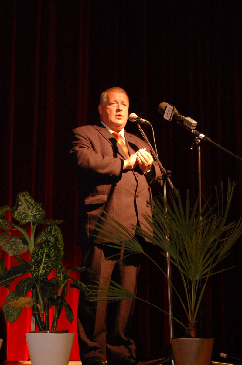 Délelőtt 9 órától kezdődött a Közösségi Házban az ünnepi műsor. Elsőként Nyeste István igazgató úr köszöntötte a vendégeket, és méltatta az iskola jelentőségét. Tállai András miniszterhelyettes, államtitkár, országgyűlési képviselő úr köszöntötte a jelenlevőket és az iskola és a katolikus oktatás jelentőségét emelte ki. Dr. Fekete Zoltán polgármester úr, mint egykor ebben az épületben tanuló diák emlékezett az iskolára és egy hímzett mezőkövesdi zászlót adott át Nyeste István igazgató úrnak az ünnep alkalmából.