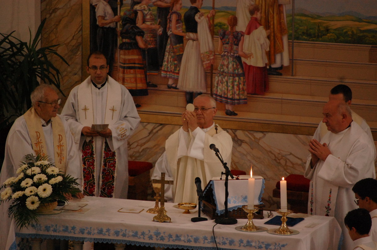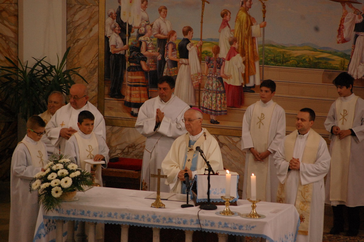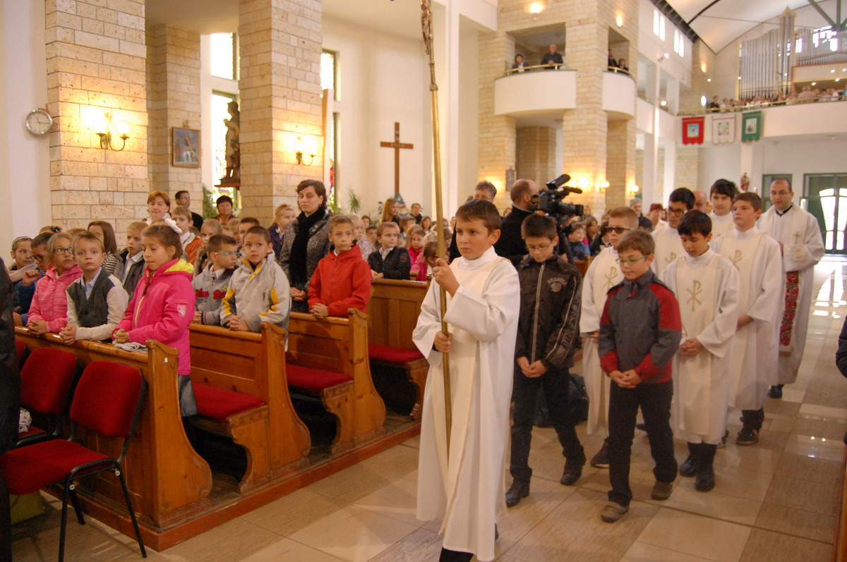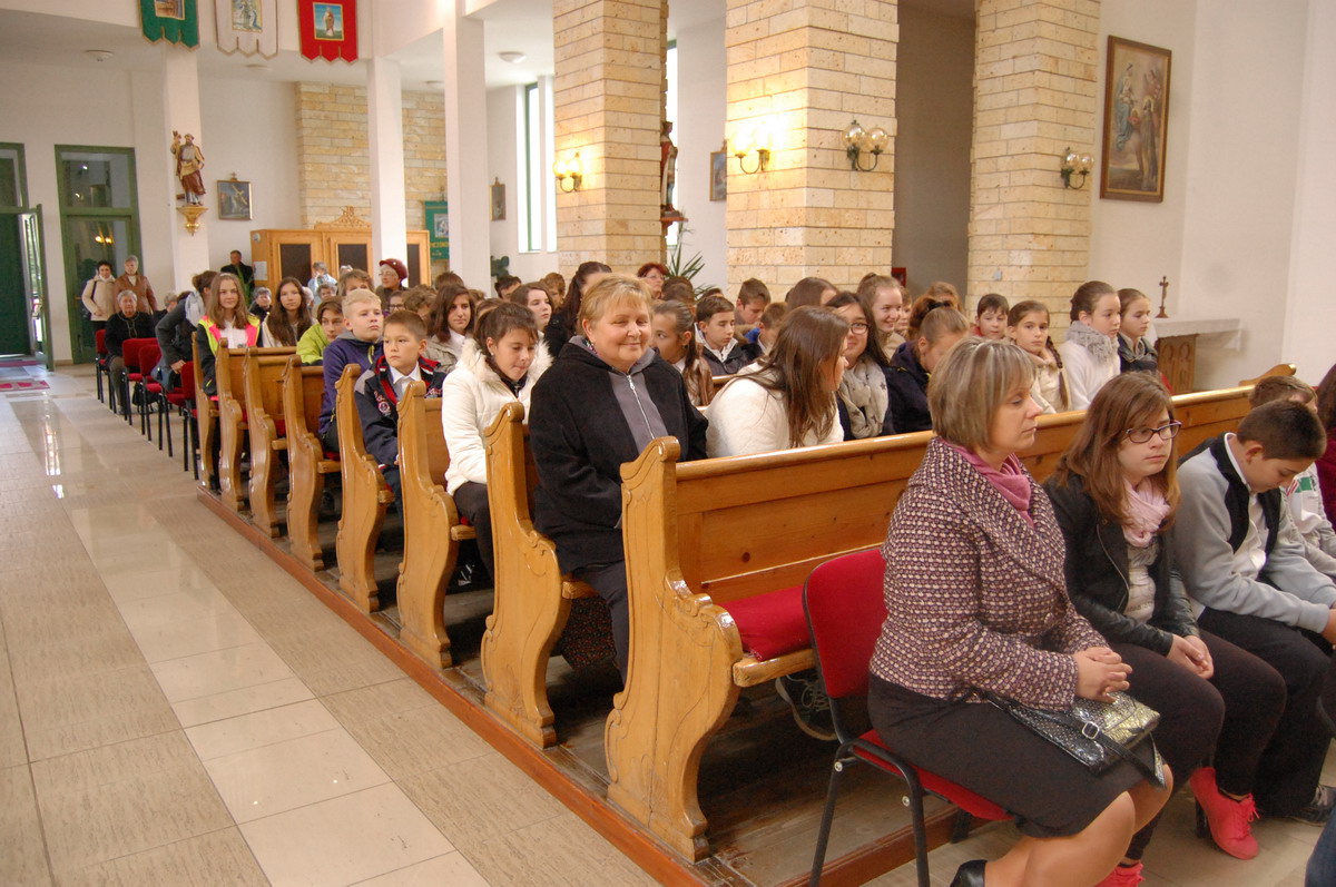 11 órakor a Jézus Szíve templomban került sor az ünnepi szentmisére, melyet dr. Ternyák Csaba egri érsek úr mutatott be. Homíliájában kiemelte, hogy október hónap tele van ünnepekkel, melyek közül kiemelkedik október 8-a, a Magyarok Nagyasszonya ünnepe. Ezen a napon tartja a Szent István katolikus iskola védőszentjének ünnepét.