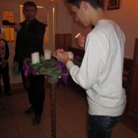 November 28-án reggel 8 órakor iskolánk adventi koszorúján meggyújtottuk az első adventi gyertyát. A koszorú lila díszei a bűnbánatot, a megtérést jelképezik. Nyeste István igazgató úr felemelő gondolatai után a jelenlevő tanulók szép énekkel örvendeztették meg a hallgatóságot.