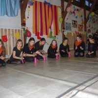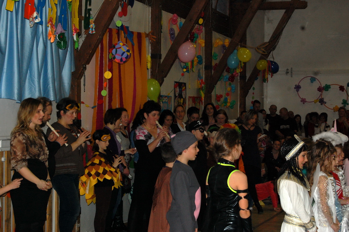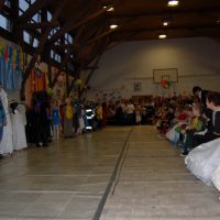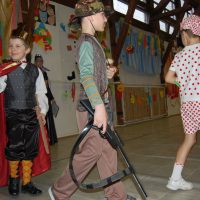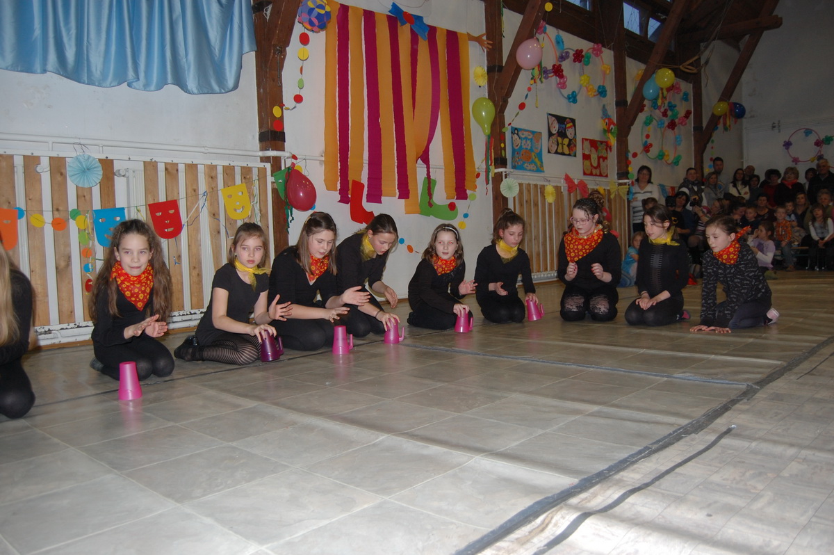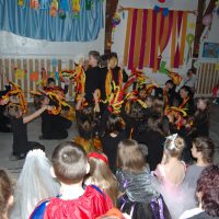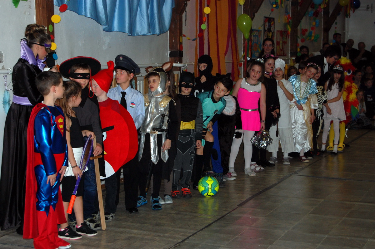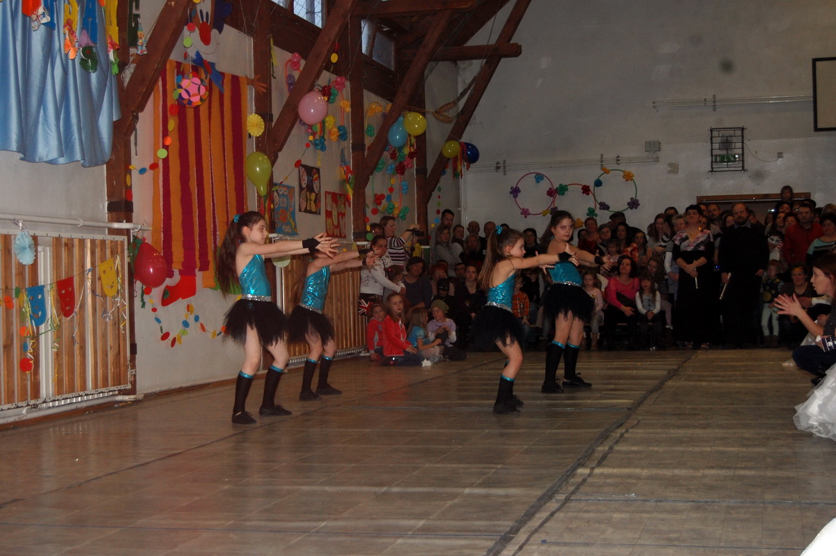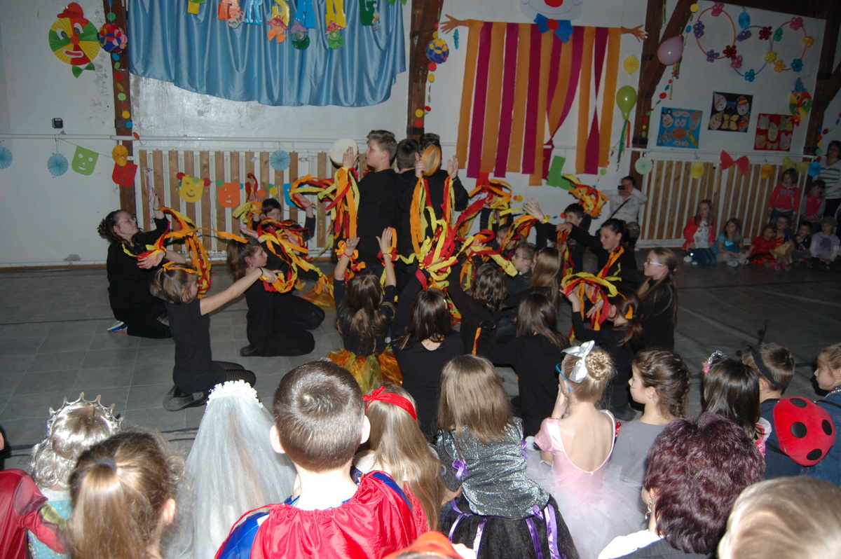 Érdekes volt látni, hogy farsangi énekükhöz-táncukhoz a szülők is csatlakoztak és ők fújták a talpalávalót. Ők a 2.a-s apukák és anyukák voltak. A 4.b-s lányok még poharas produkcióval is megörvendeztettek bennünket. A többi osztály remek, ötletes jelmezei nagy tapsot csaltak ki a megjelent szülőkből, rokonokból és ovisokból.