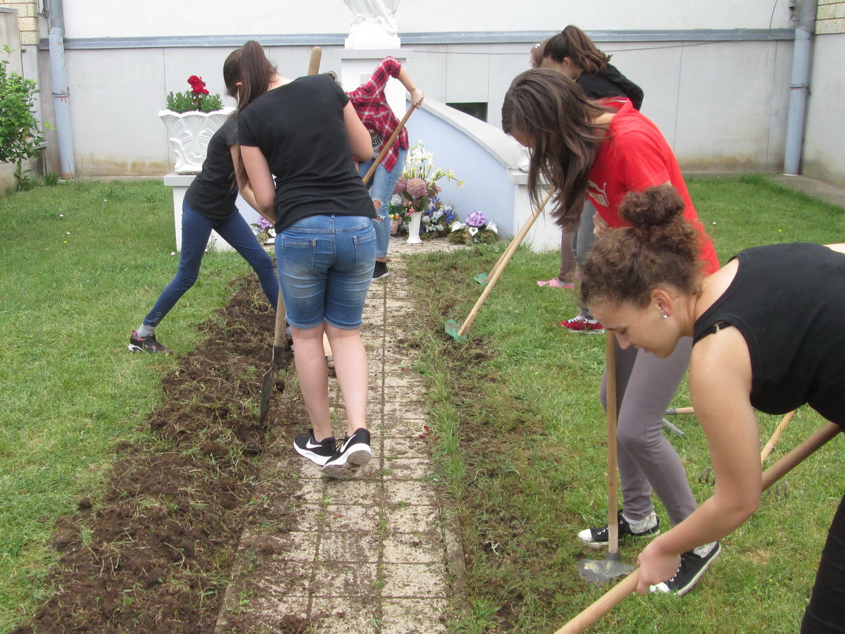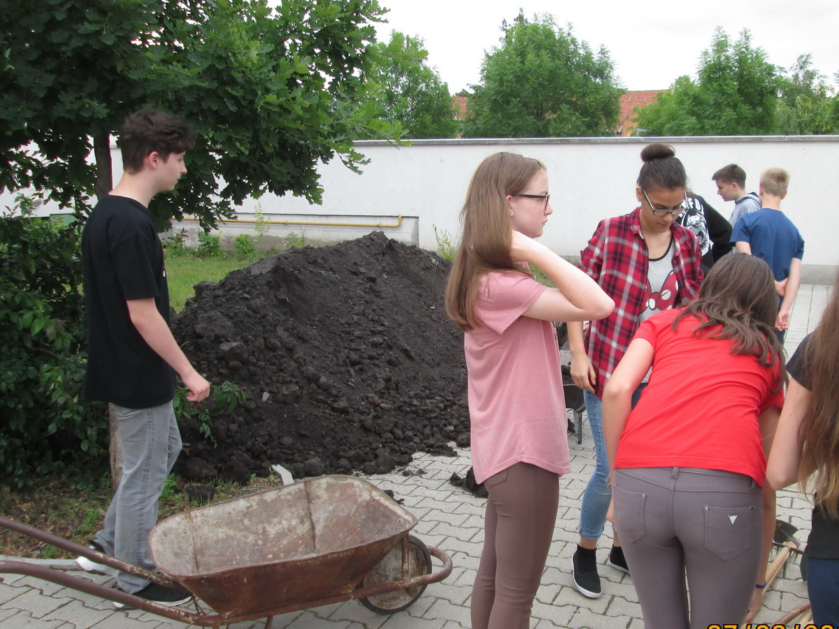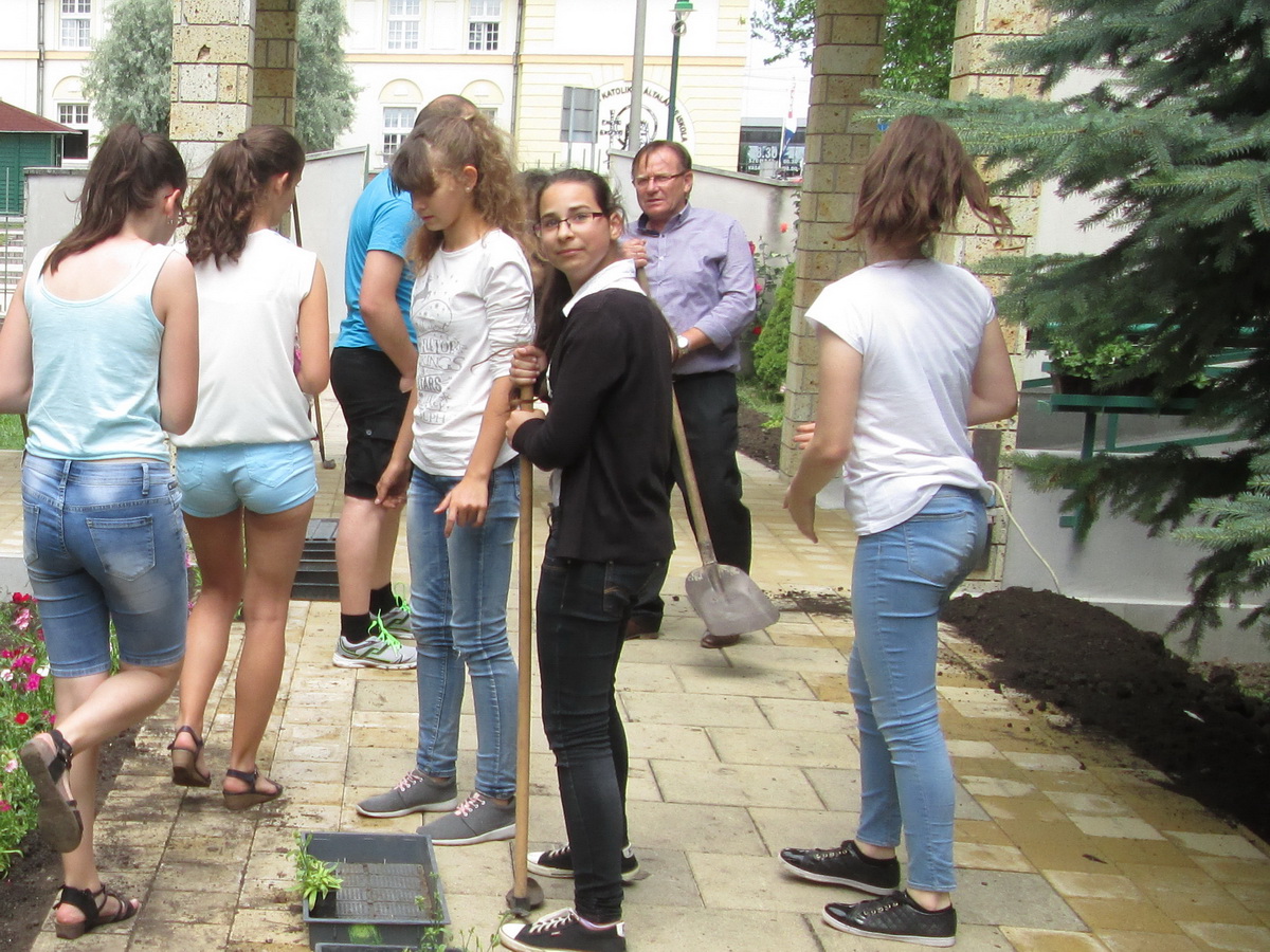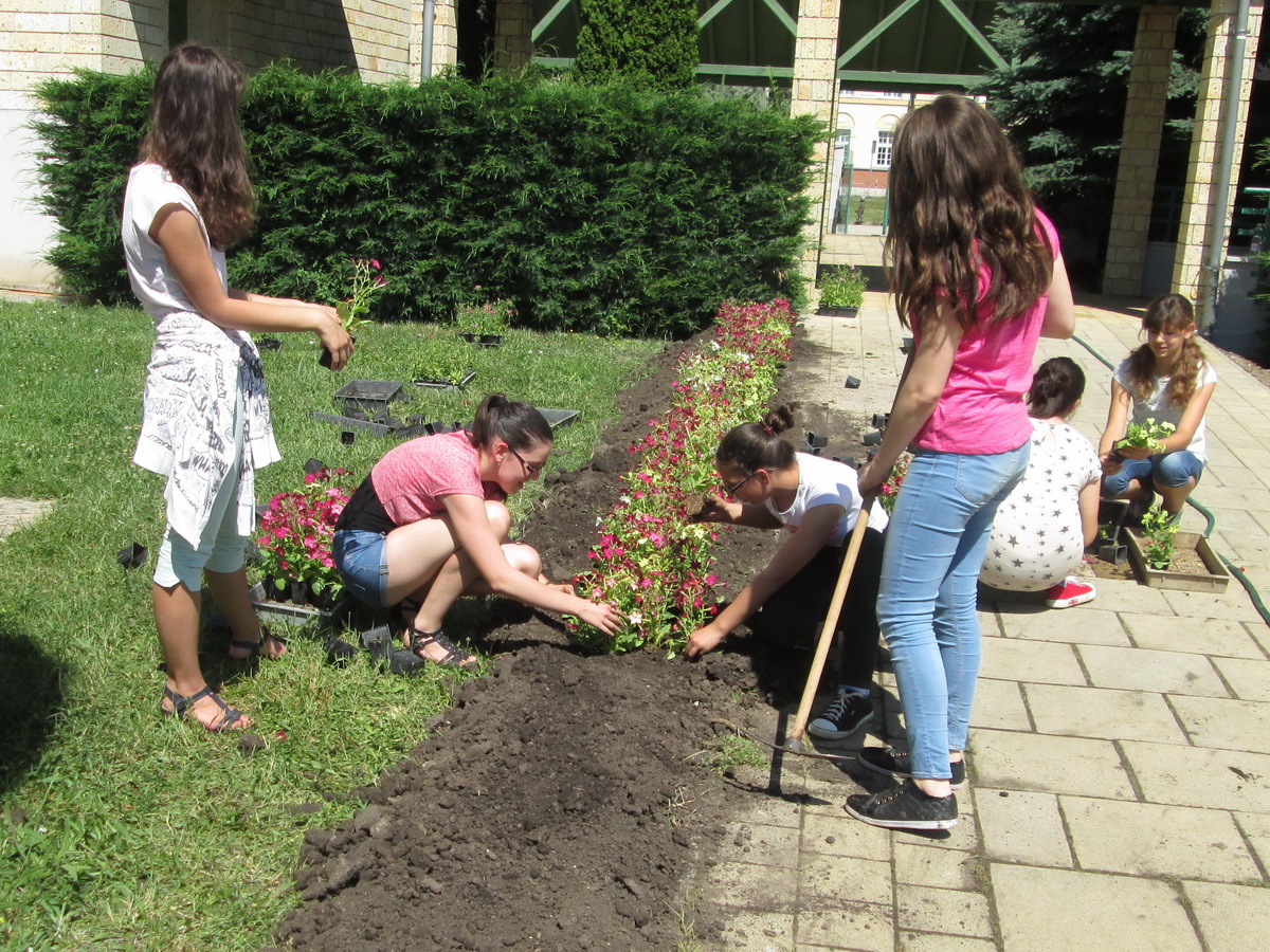 Az EFOP 1.3.5-16 pályázat keretében 2017. június 14-én iskolánk 6-7-8. osztályos tanulói településszépítő közösségi programban vettek részt. Iskolánkban és iskolánk környezetében, a plébánián földet rendeztek, virágokat ültettek.