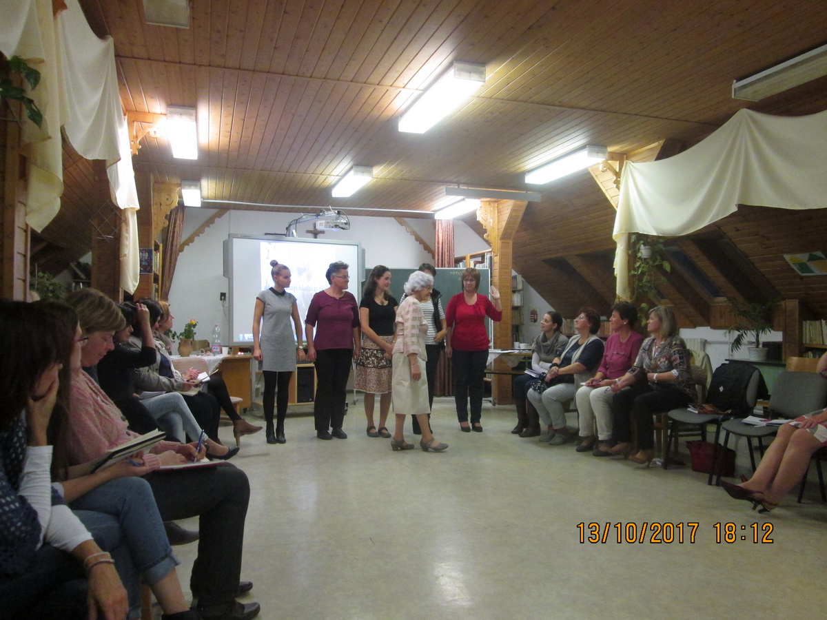 Winkler Márta interaktív előadást tartott a mezőkövesdi óvó- és tanítónőknek a Szent István Katolikus Általános Iskola könyvtárában, október 13-án. A nehezen kezelhető, magatartászavaros gyerekek iskolába integrálása volt a téma.