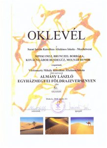A döntő április 20-án került megrendezésre, Miskolcon. iskolánk csapata (Sipeki Inez, Brunczel Borbála, Kovács Gábor Bendegúz, Molnár Hunor – 7.b osztályos tanulók)