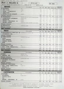 | Hétfő | Tejeskávé, főtt tojás, margarin, teljes kiőrlésű kenyér, paradicsom | Zöldségleves eperlevéllel Babfőzelék, baromfi korong |