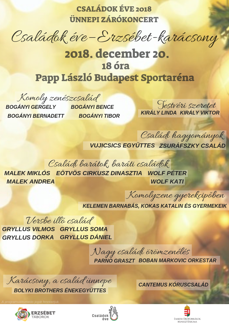 A pályázat keretében az iskolánk énekkarának tagjai – amint azt korábban aláírt szülői hozzájáruló nyilatkozatukban jelezték – budapesti Papp László Sportarénában megrendezésre kerülő ünnepi műsoron vehetnek részt (részletes program a www.erzsebettaborok.hu oldalon található).