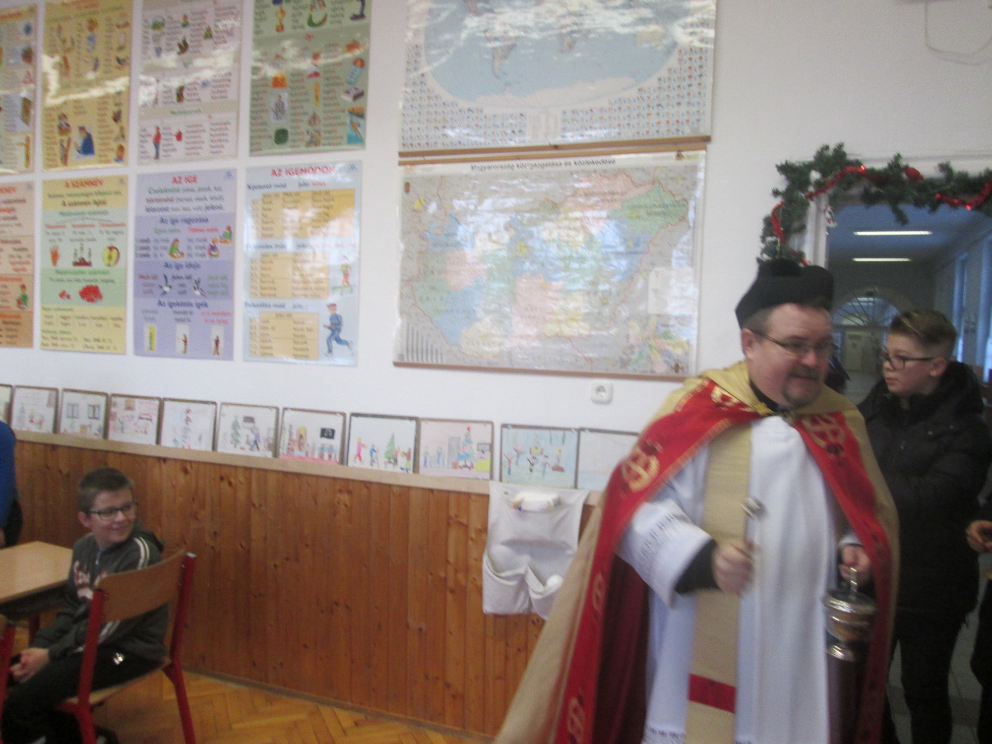 Iskolánk házszentelésére 2019. január 7-én, hétfő reggel került sor. A házszentelést dr. Török László plébános úr végezte.