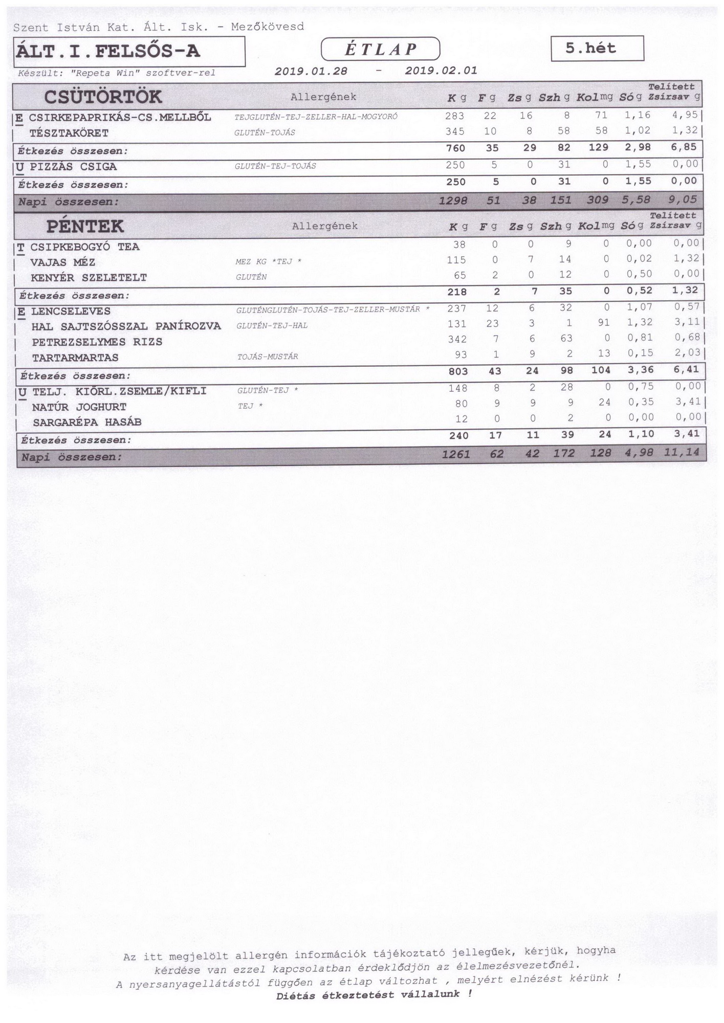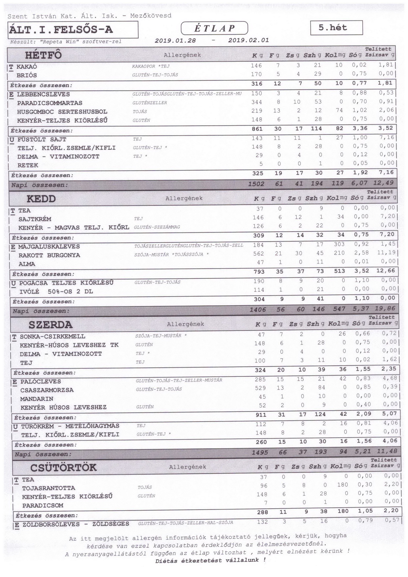 Kérjük az étkezési ill. elviteli szándékot hét elején, lehetőleg hétfőn jelezni, mert előfordulhat, hogy a későn leadott igényeket már nem tudjuk teljesíteni. Az étkezést az adott napon reggel 8:00-ig lehet lemondani.