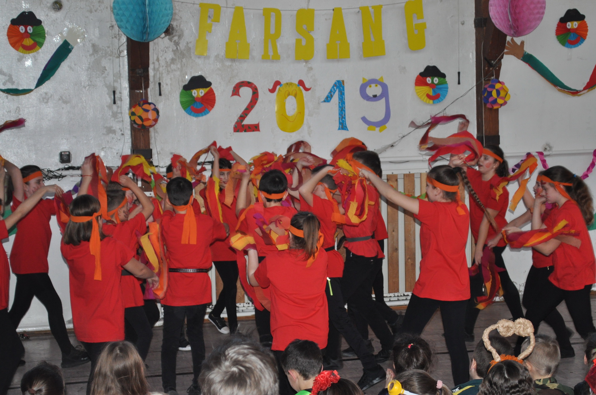 Február 22-én délután 4 órakor nagy tömeg nézte az alsósok farsangját.
