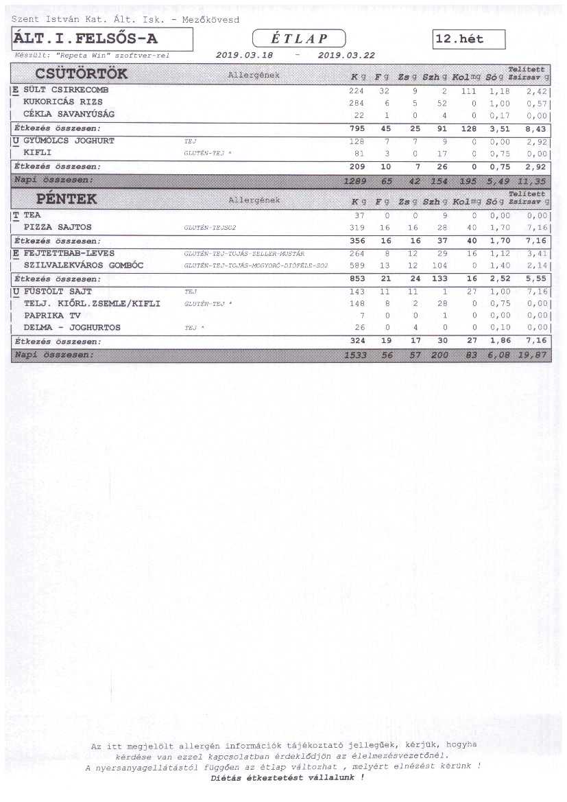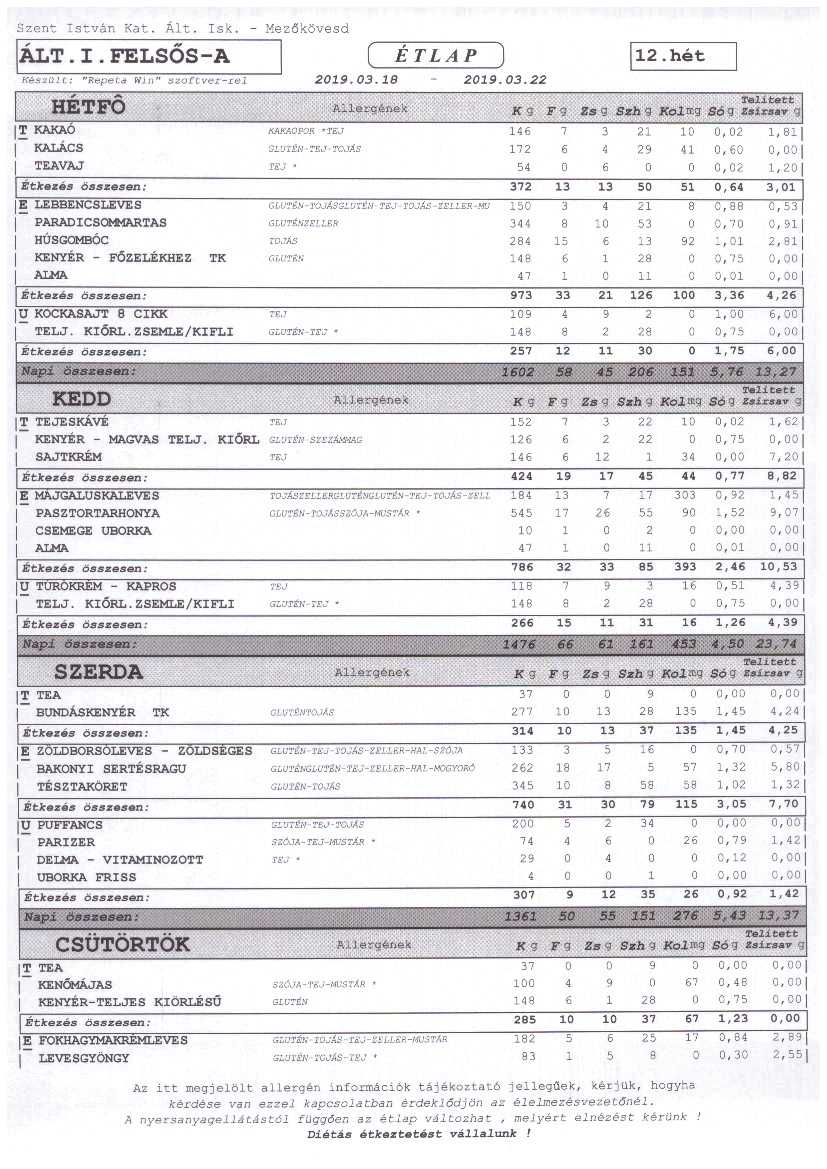 Heti étrend – 12. hét