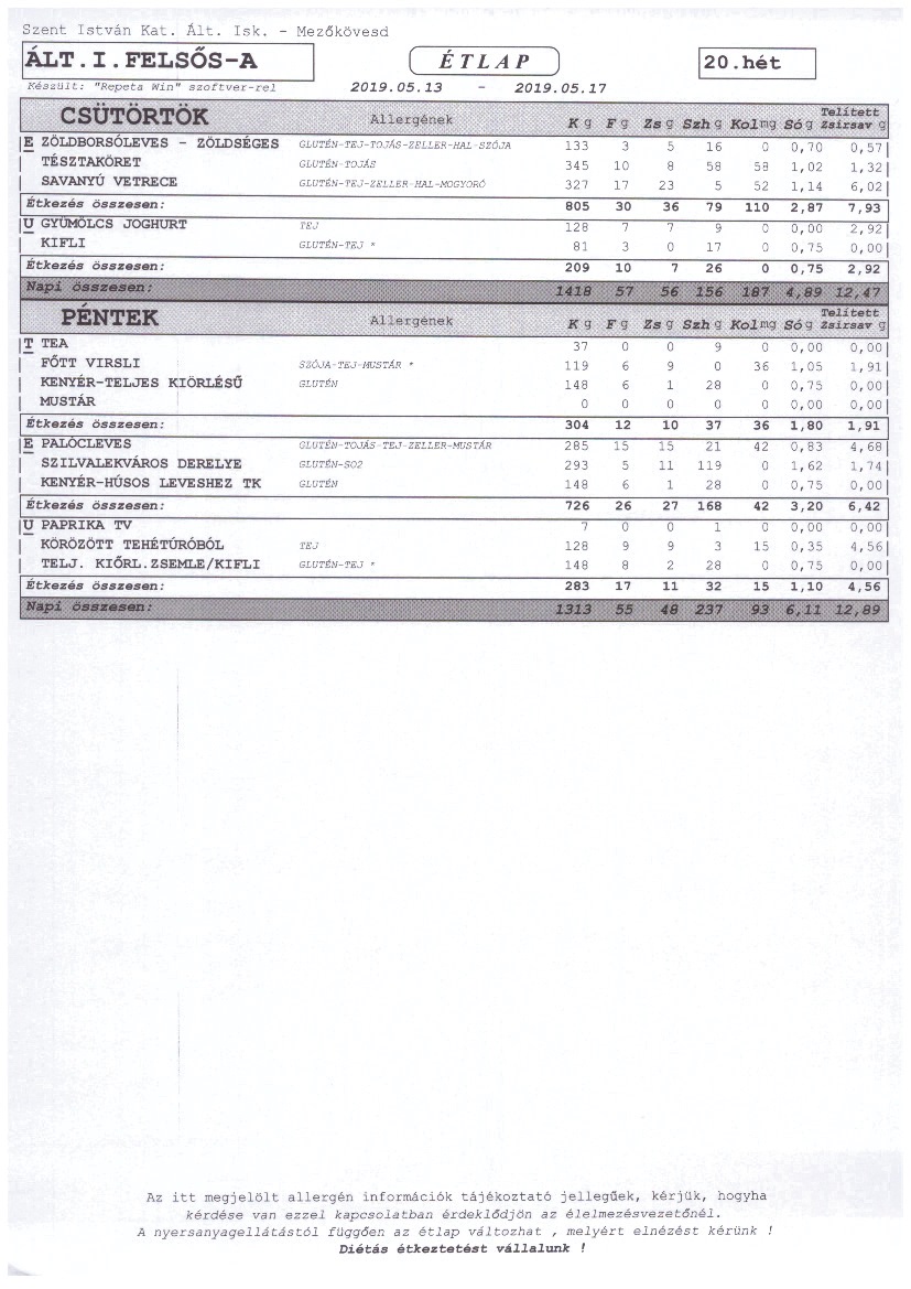 Kérjük az étkezési ill. elviteli szándékot hét elején, lehetőleg hétfőn jelezni, mert előfordulhat, hogy a későn leadott igényeket már nem tudjuk teljesíteni. Az étkezést az adott napon reggel 8:00-ig lehet lemondani.