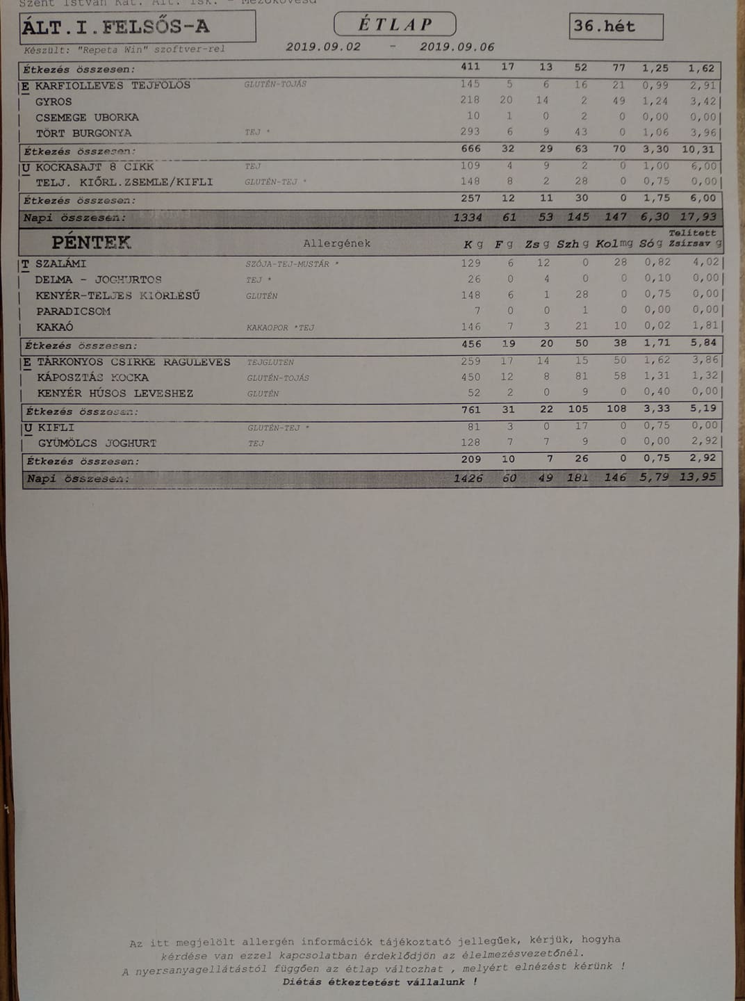 Heti étrend – 36. hét –
