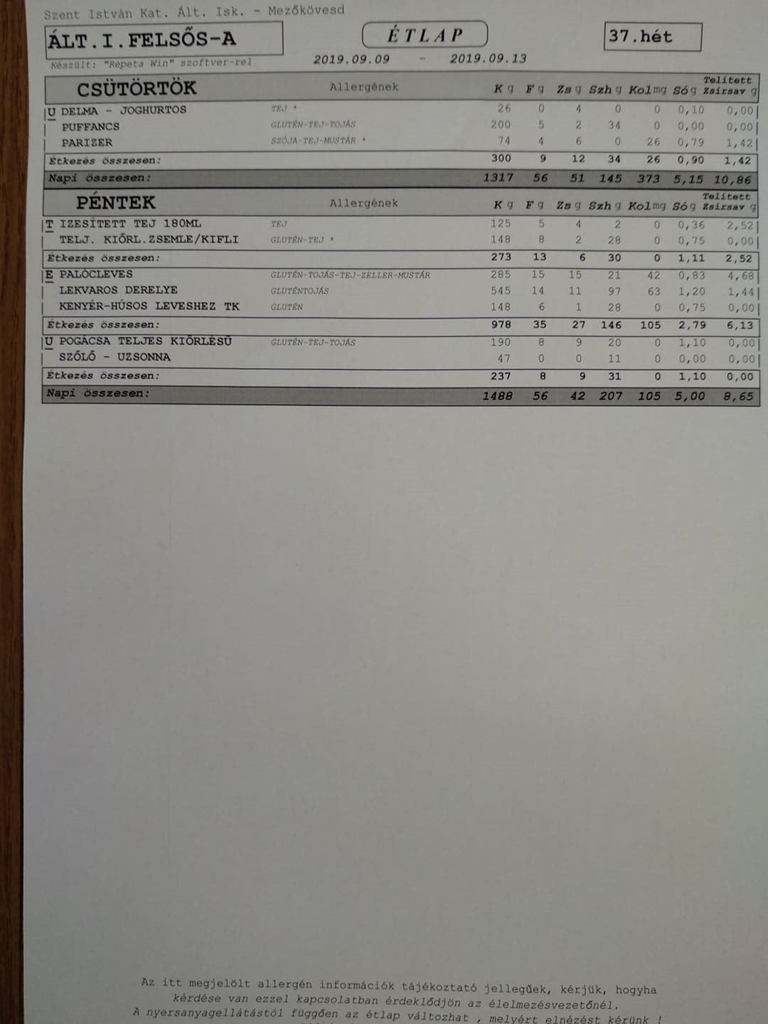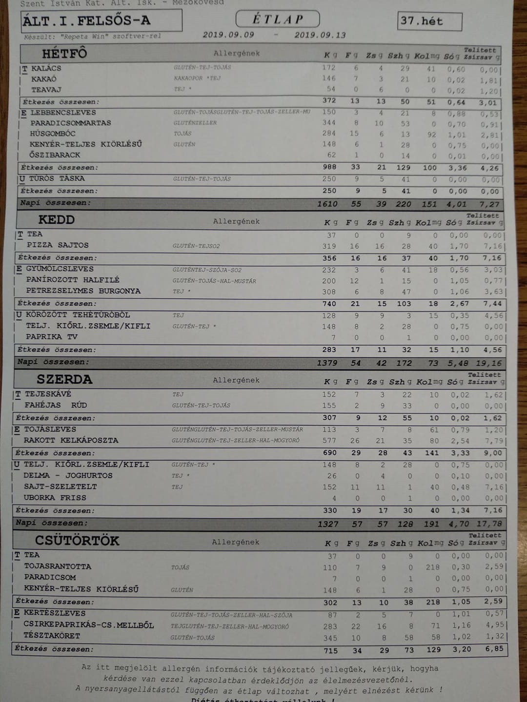 Heti étrend – 37. hét –