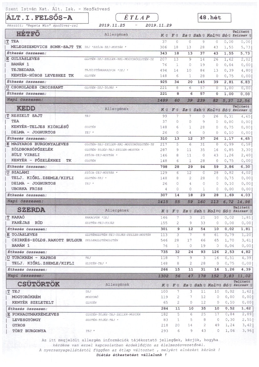Heti étrend – 48. hét –