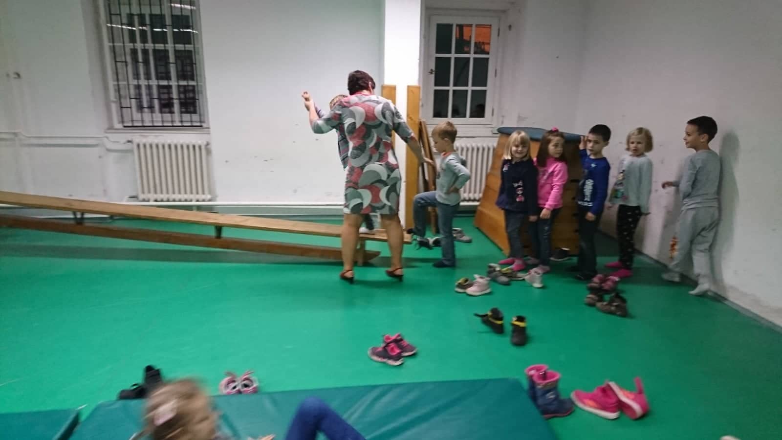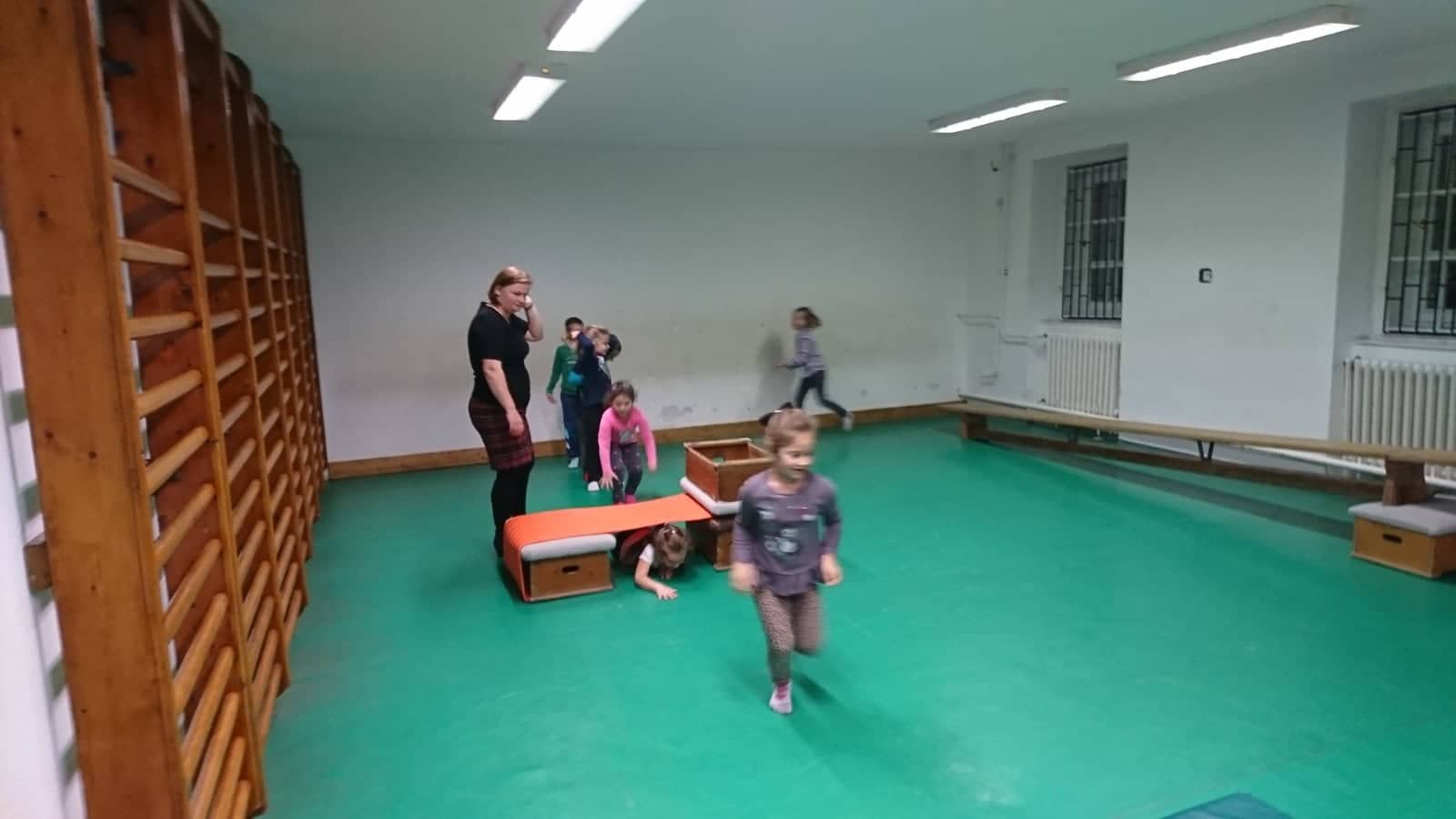 A 2. iskolaelőkészítő foglalkozáson nagy számú gyereksereg vett részt. Az őszi tematikájú órán versekkel, mesével, énekkel fejlesztettük a kicsiket. A nagy mozgásuk javítását a kis tornateremben akadálypályán valósítottuk meg. A merészebbek a mászófalat is kipróbálhatták.