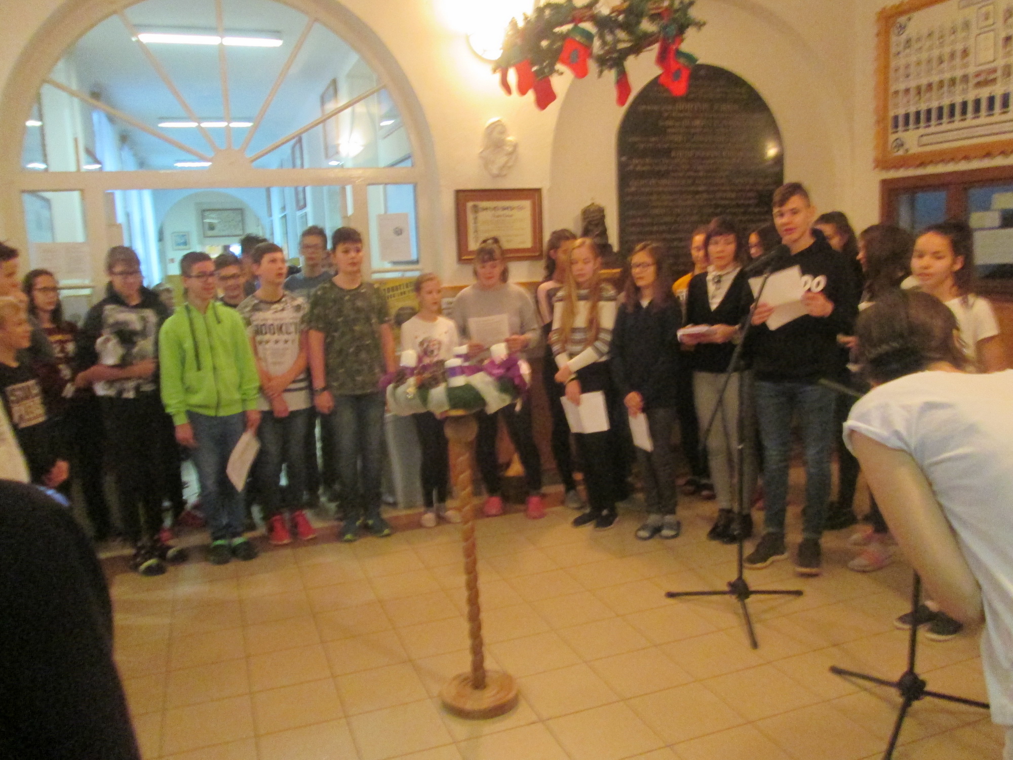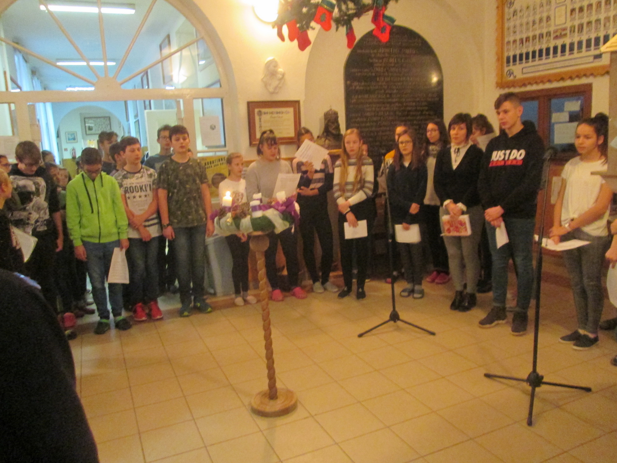 Advent első hétfőjén meggyújtottuk ez első gyertyát az adventi koszorún. A műsort a 7.a osztály tanulói adták elő, Sikó-Fehérvári Csilla tanárnő felkészítésével.