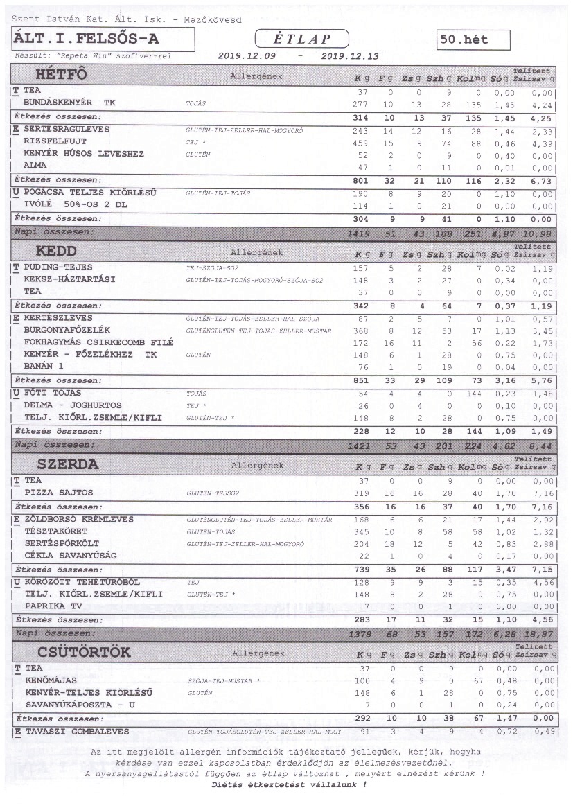 Heti étrend – 50. hét –