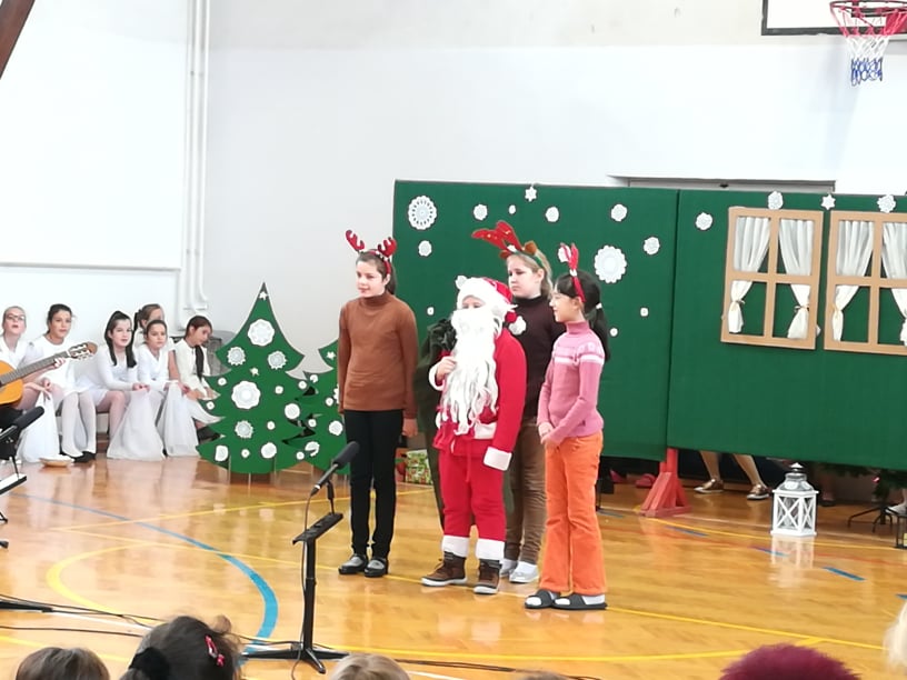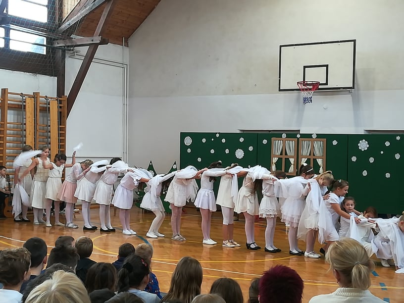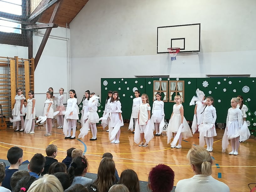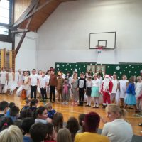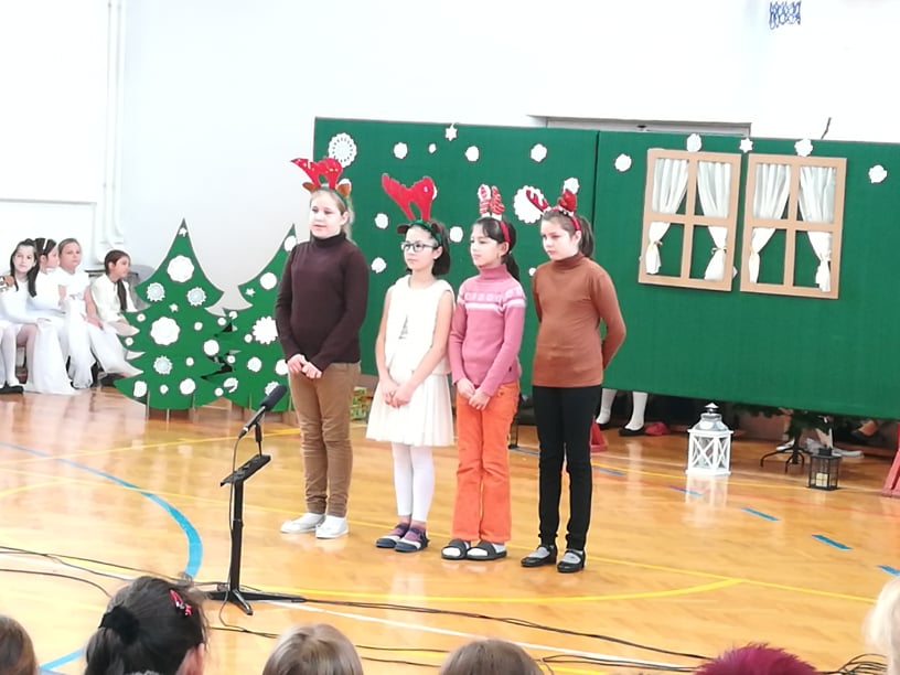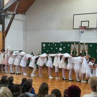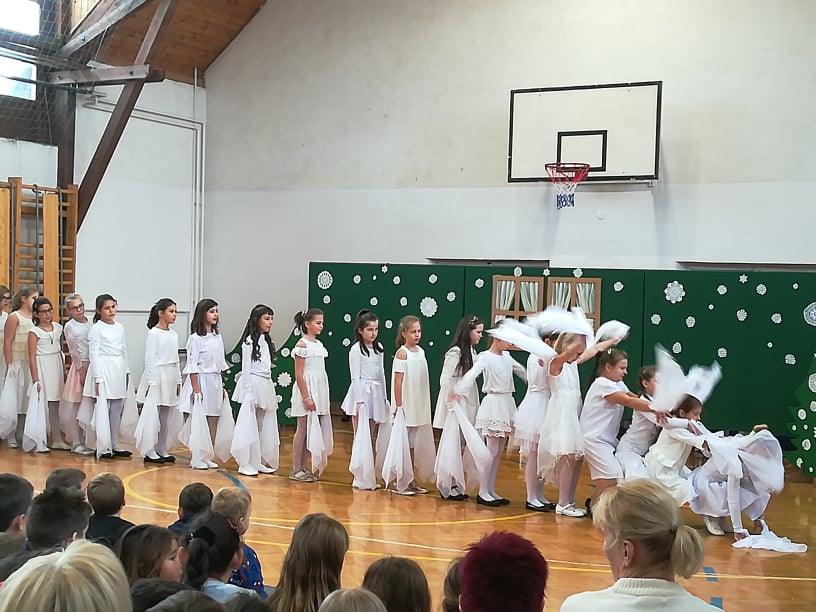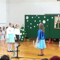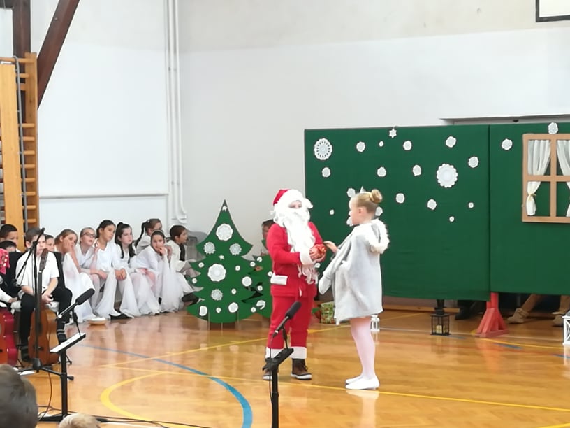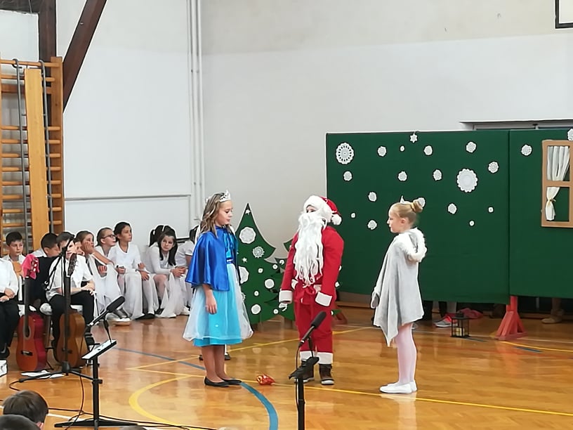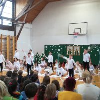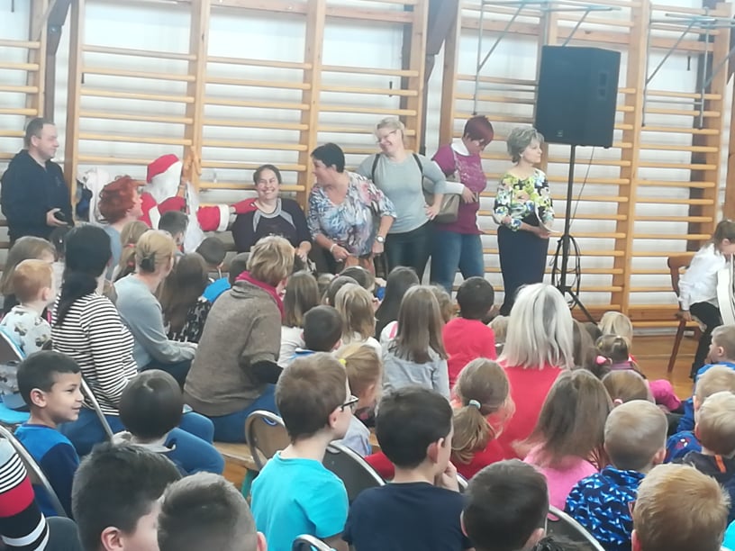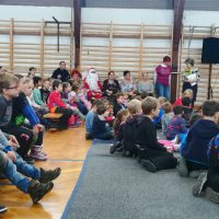 Az első órában izgatottan várták az 1-4. osztályos gyermekek a nagyszakállú Mikulást. Az idei műsor három osztály lelkes munkáját dicséri. A 3.a és b osztályosok, valamint a 4.a napközisei vettek részt az előadásban.