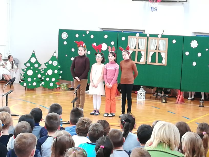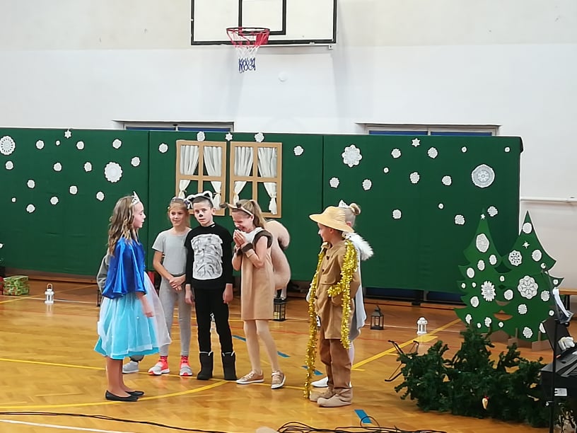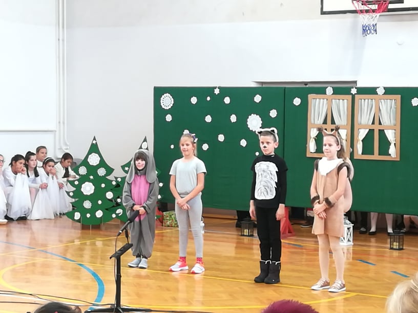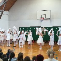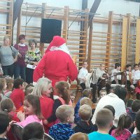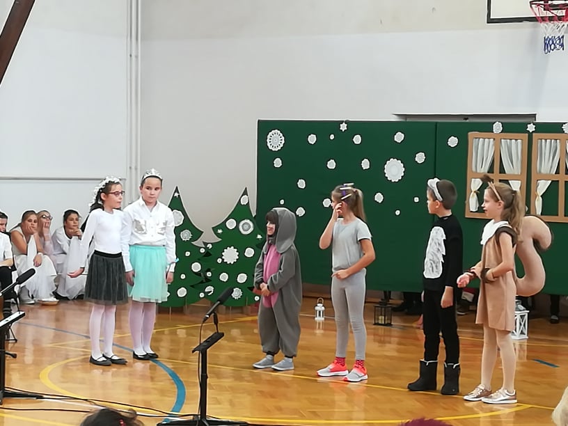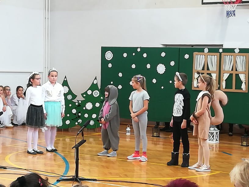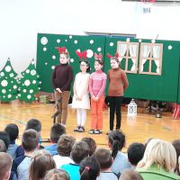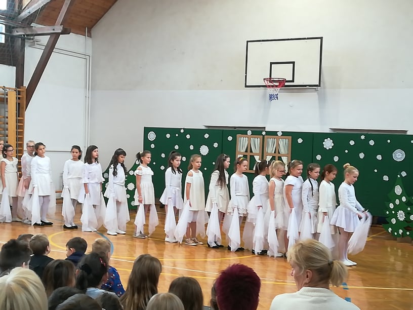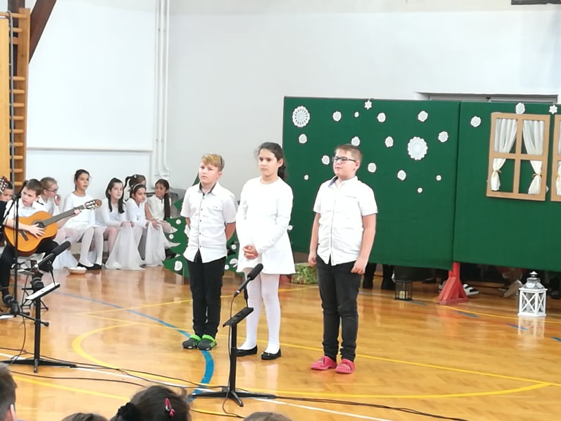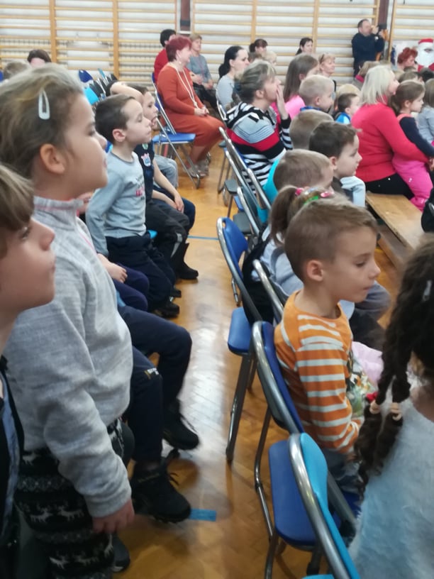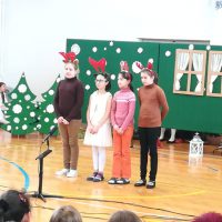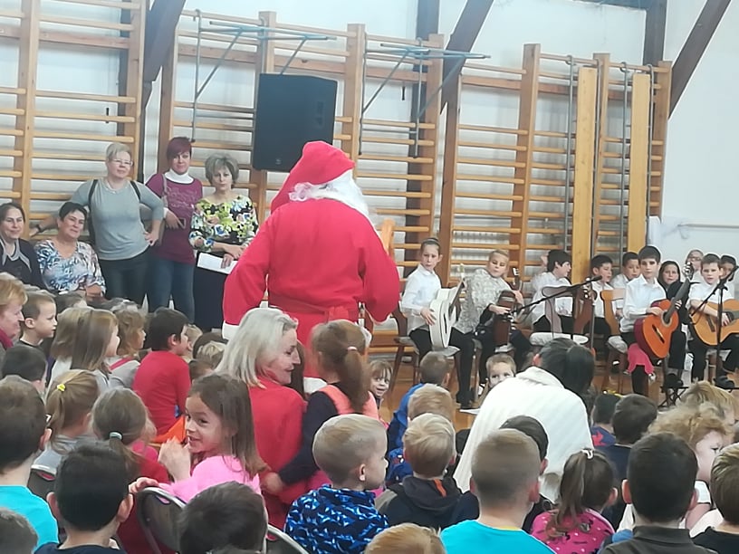 Az első órában izgatottan várták az 1-4. osztályos gyermekek a nagyszakállú Mikulást. Az idei műsor három osztály lelkes munkáját dicséri. A 3.a és b osztályosok, valamint a 4.a napközisei vettek részt az előadásban.