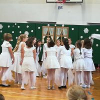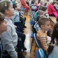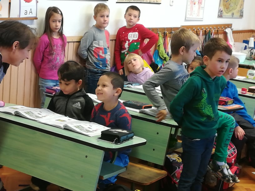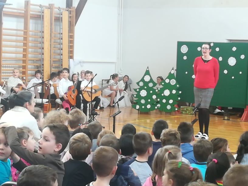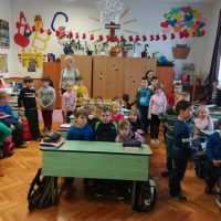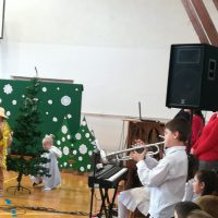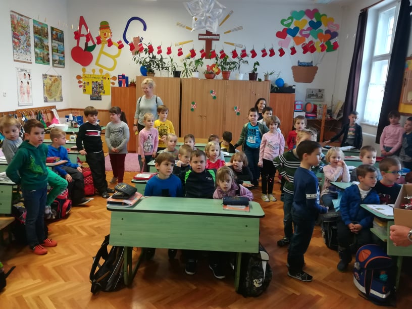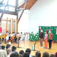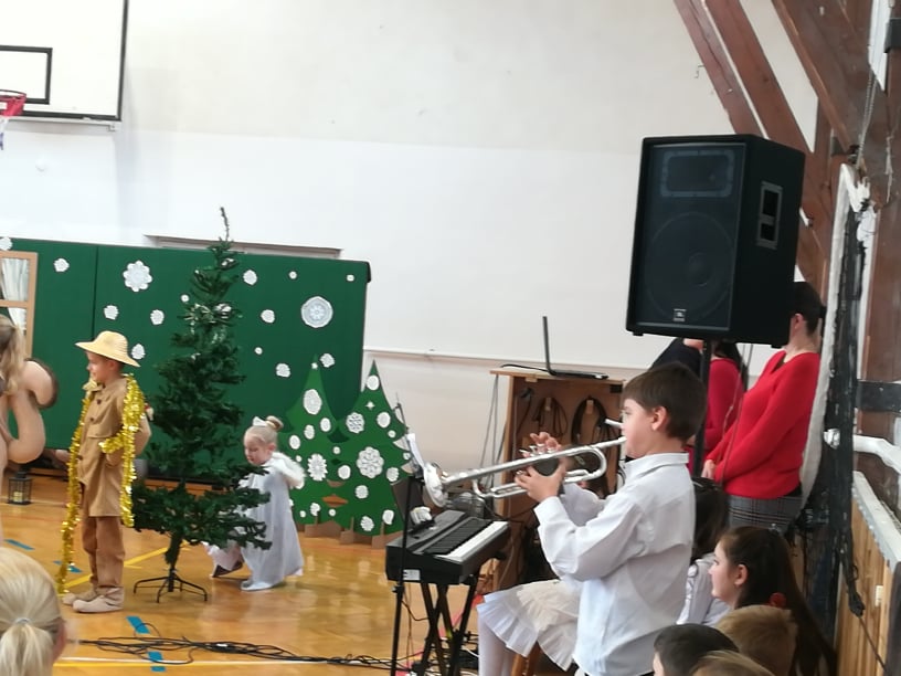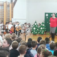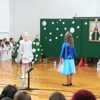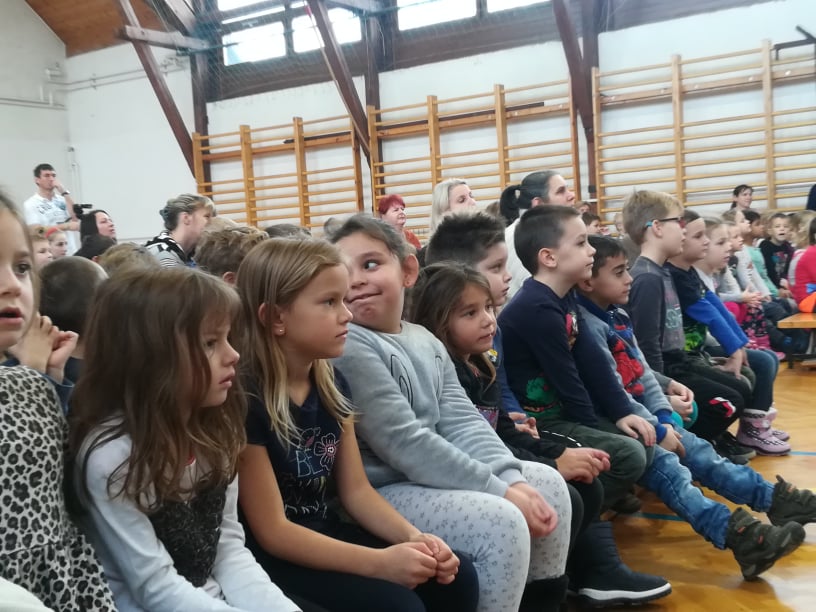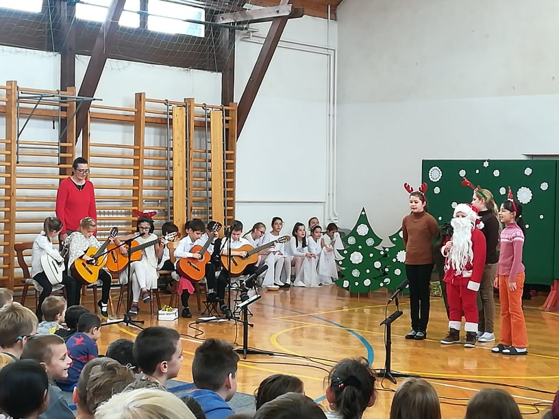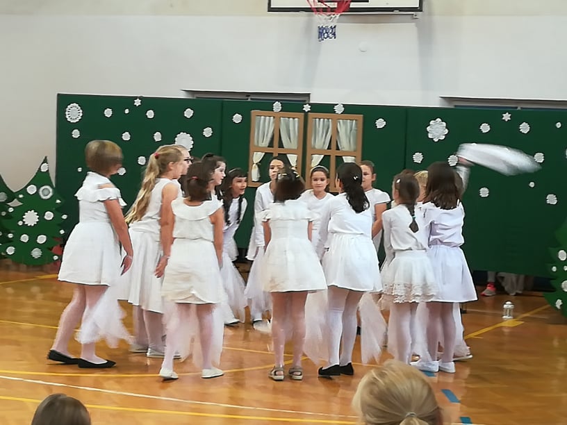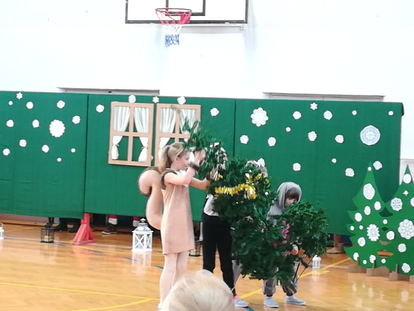 Az első órában izgatottan várták az 1-4. osztályos gyermekek a nagyszakállú Mikulást. Az idei műsor három osztály lelkes munkáját dicséri. A 3.a és b osztályosok, valamint a 4.a napközisei vettek részt az előadásban.