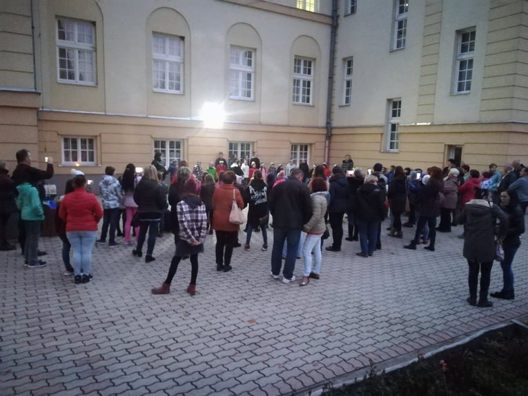 Ezt követően német és magyar dalokat énekelve tettek egy kört a sportpálya körül, saját maguk készítette lámpásokkal.