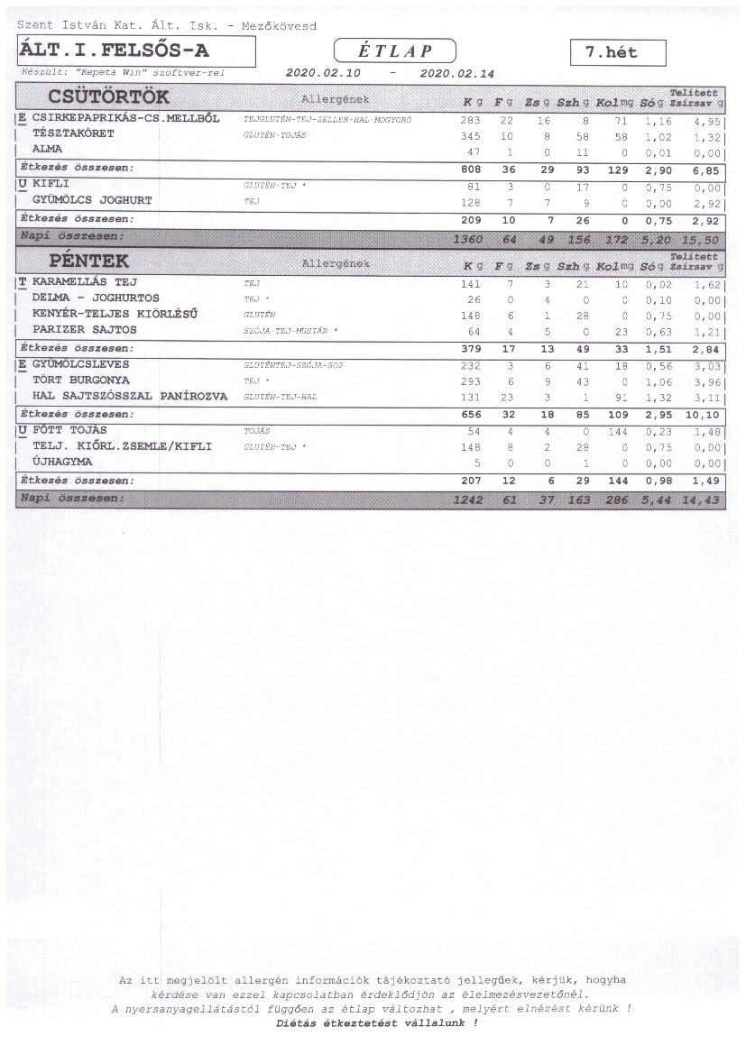 Heti étrend – 7. hét –