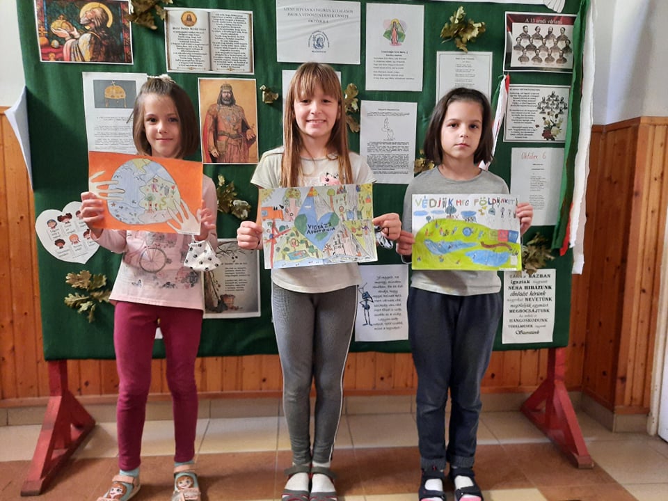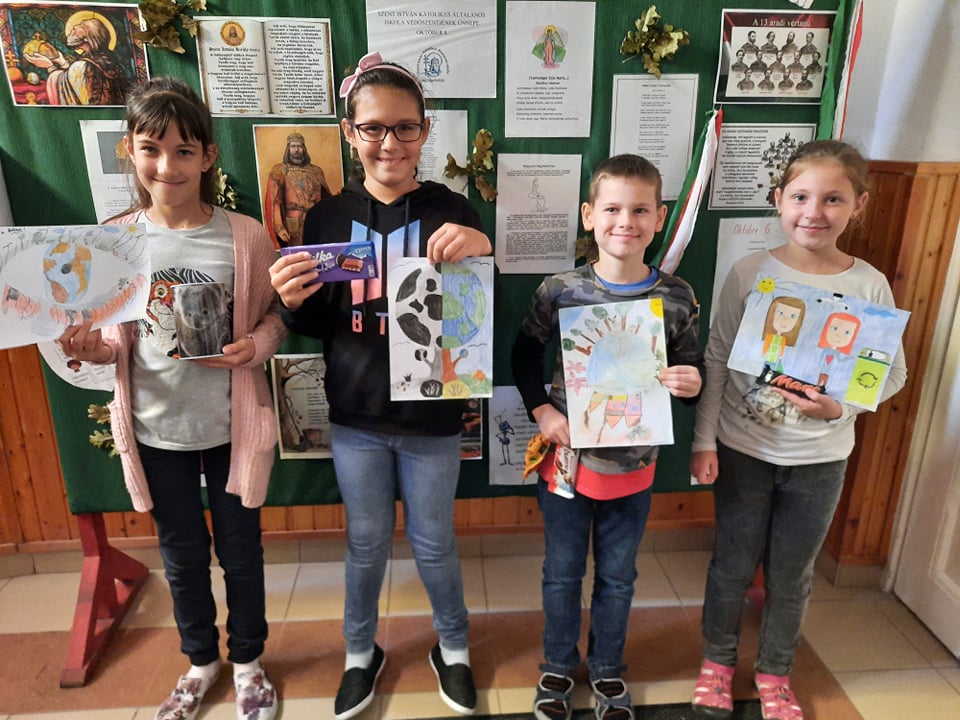 Iskolánkban a témahetet rajzpályázat kiírásával vezettük be. Már szeptember 15. után kihirdettük a tanulóinknak a „Mentsük meg a Földet!” című pályázatot. Mind az alsó és felső évfolyamokból is érkeztek rajzok. Az elkészült munkák jól szemléltették Földünk szomorú helyzetét. A gyerekek munkáiban kifejezték a bolygónk iránti szeretetüket és arra való figyelés fontosságát, illetve azt is, hogy mi történhet vele, ha mindezt figyelmen kívül hagyjuk. A beérkező munkákat értékeltük, valamint ajándéktárggyal és édességcsomaggal jutalmaztuk.