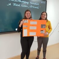 Iskolánkban a Témahét programjába a 7. évfolyam tanulóit neveztük be. A kiemelt témák közül mi a klímaváltozást választottuk. A gyerekek számára már szeptember első heteiben kiosztottuk a kiselőadások témáit. A tanulók párosával vagy egyénileg vállalkozhattak ppt-k, lapbook-ok illetve plakátok készítésére. Az elkészült munkáikat a témahéten mutathatták be. A gyerekek lapbook-jait és plakátjait a rajzokkal együtt az iskolánk folyosóján állítottuk ki. Így a többi évfolyam tanulói is megismerkedhettek a klímaváltozás súlyos és visszafordíthatatlan következményeivel. A gyerekek munkáinál mind a benyújtott anyagra, mind annak előadás módjára jegyet kaptak.