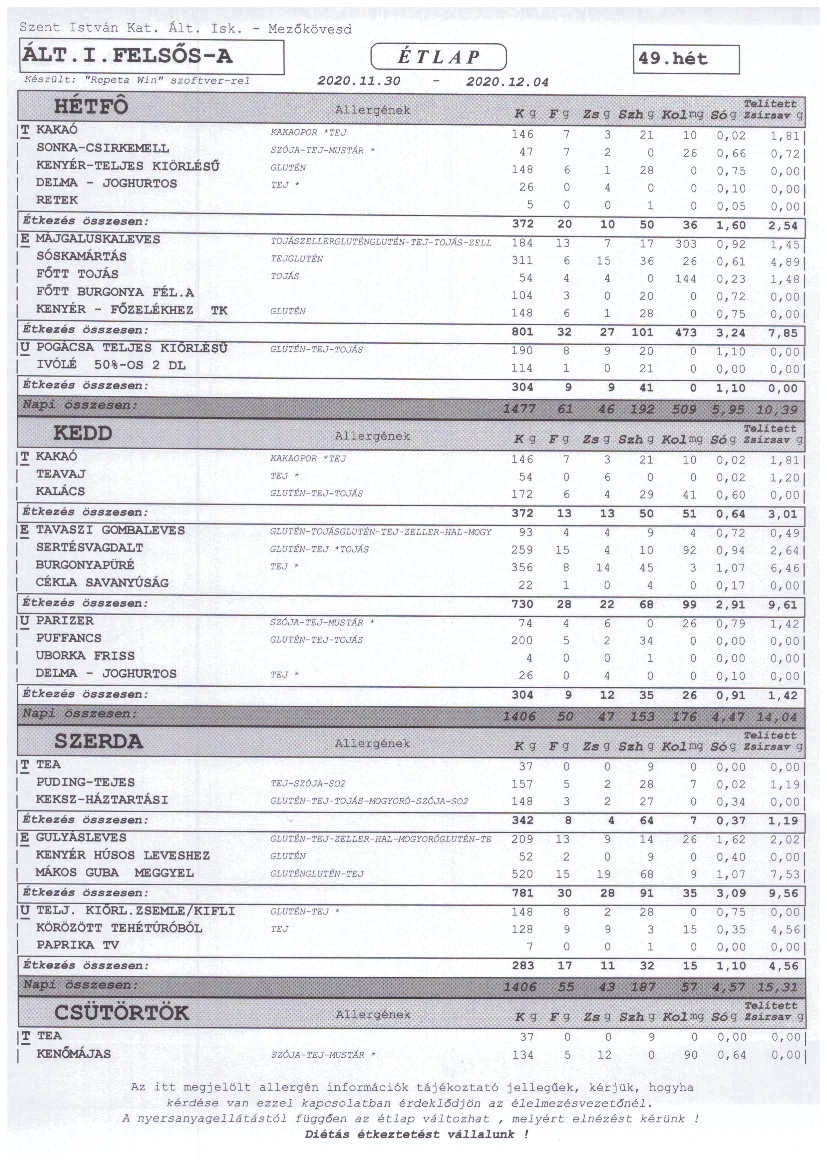 Heti étrend – 49. hét –