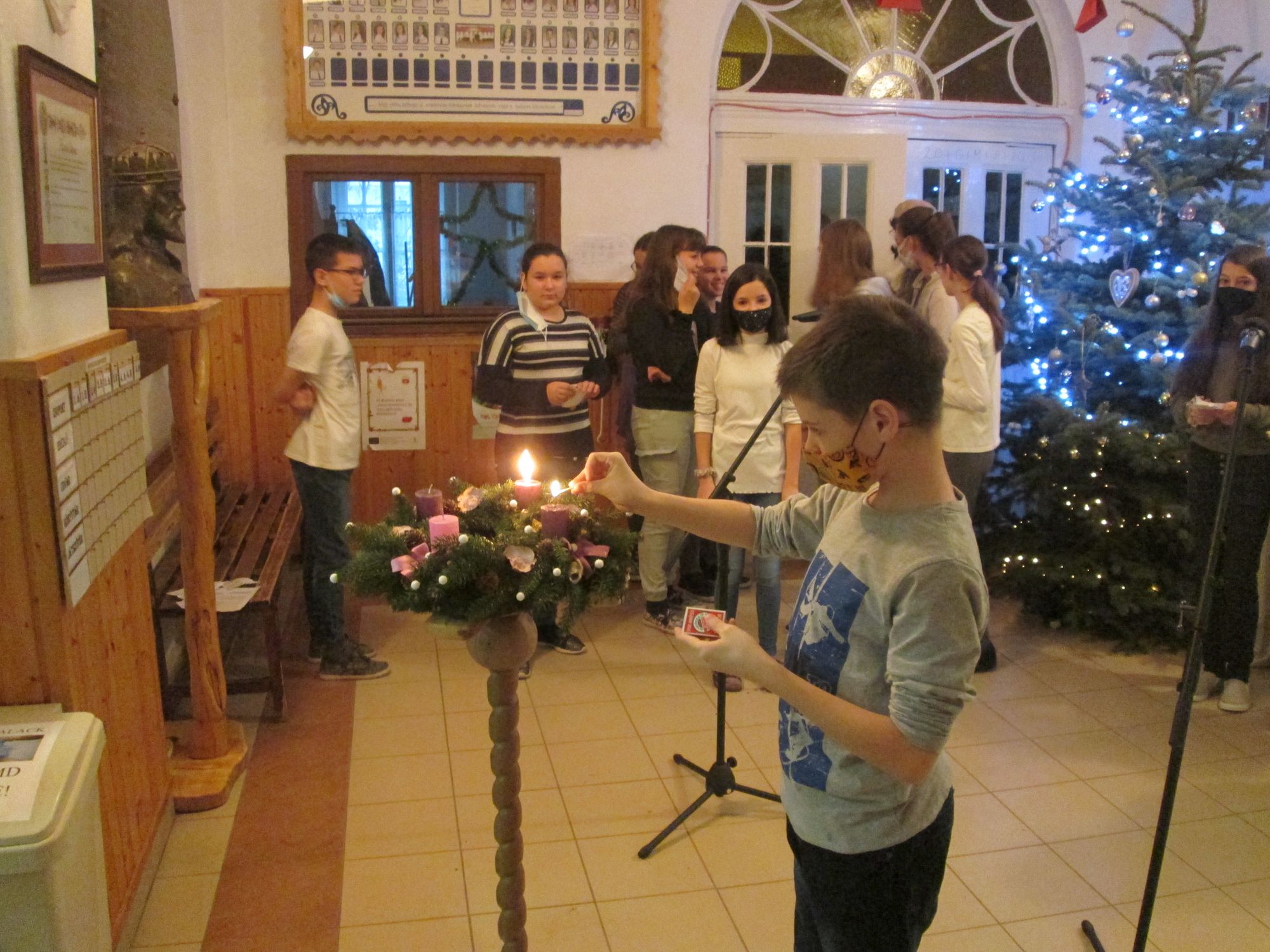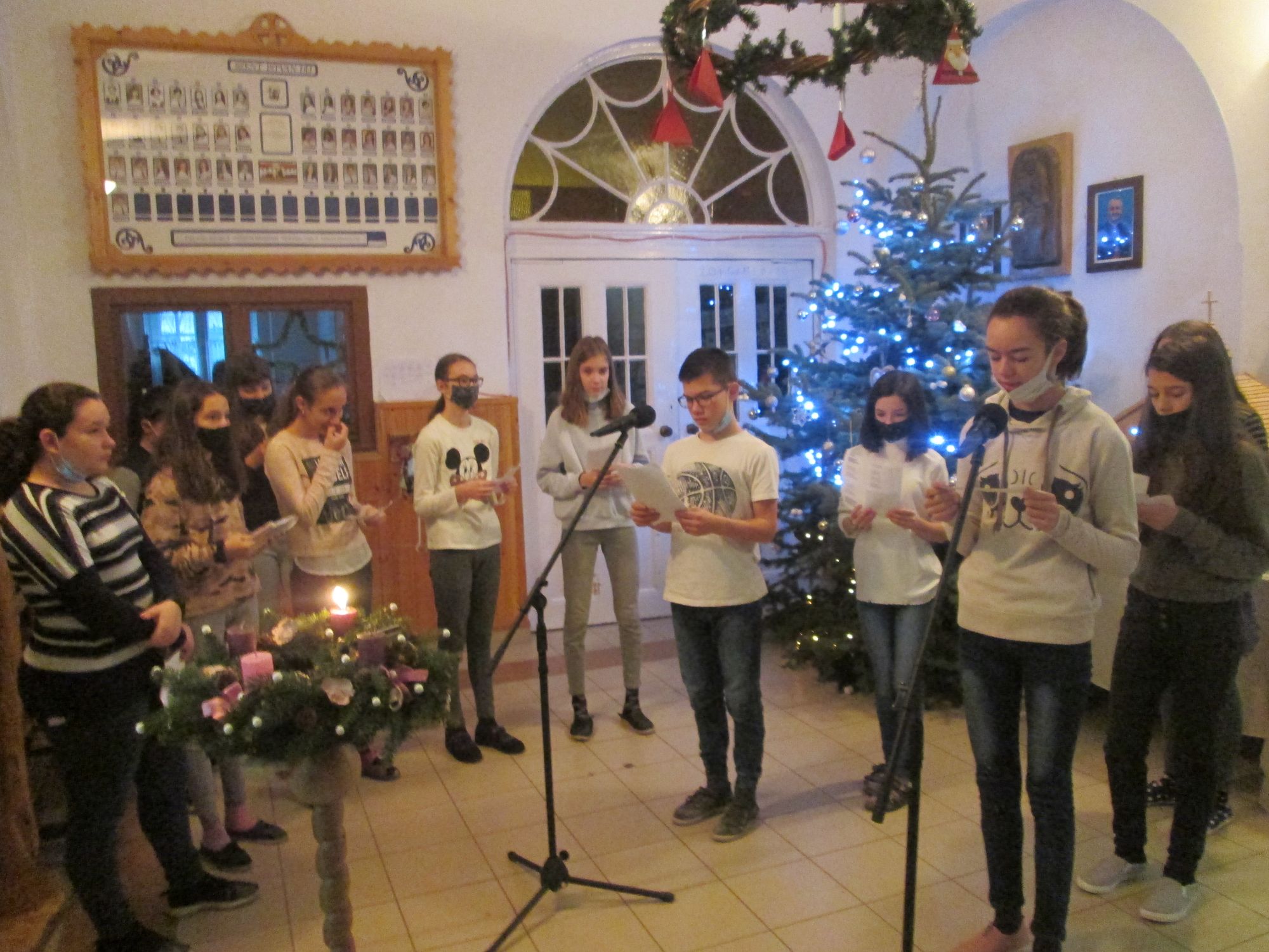 Iskolánkban a járványügyi helyzet miatt az első gyertya meggyújtását nem tudtuk közösen elvégezni, de a második és harmadik gyertya meggyújtására az aulában sor került.