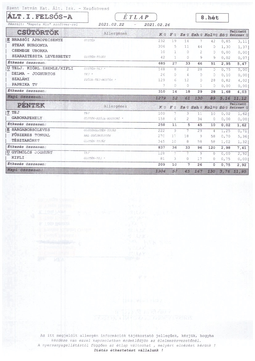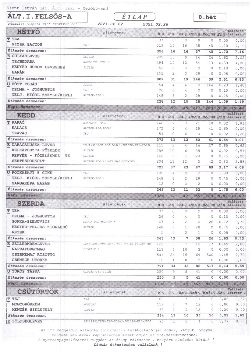 Heti étrend – 08. hét