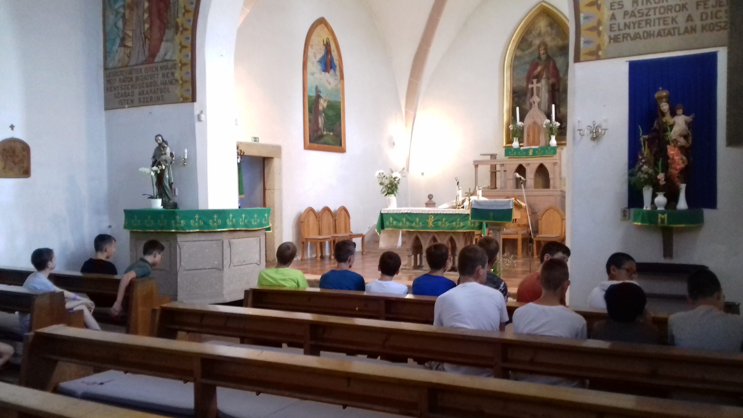 A tábor első napján az időjárás az előző hét kánikulájához képest igencsak komorra fordult, ám ez nem szegte kedvünket. Szállásunkat elfoglaltuk a bogácsi plébánia melletti Szent Márton diáktanyán, majd miután kisütött a nap, elmentünk a strandra. A hét folyamán megtekintettük a bogácsi templomot, ellátogattunk a falu határában lévő kilátóhoz, túráztunk Síkfőkúton, ahol az esőkabátokat is elő kellett vennünk. Szerda délelőtt izgalmas sportvetélkedőn szurkolhattunk csapatainknak, Paczáné Horváth Erika tanárnő jóvoltából. Délután ismét strandoltunk, majd este tüzet raktunk, nyársaltunk és sötétedés után a tábortűznél beszélgettünk. Csütörtök délután a szafaribusz repített minket árkon-bokron, hegyen-völgyön keresztül a Bükkbe. Péntek délelőtt élményekkel gazdagon, a még hátralévő néhány hét szünet fényében tértünk haza otthonunkba.