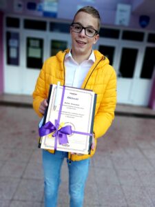 Beller Benedek 8.a osztályos tanuló 5 tantárgyból méretette meg tudását, mind az 5 tárgyból tovább is jutott a döntőbe.