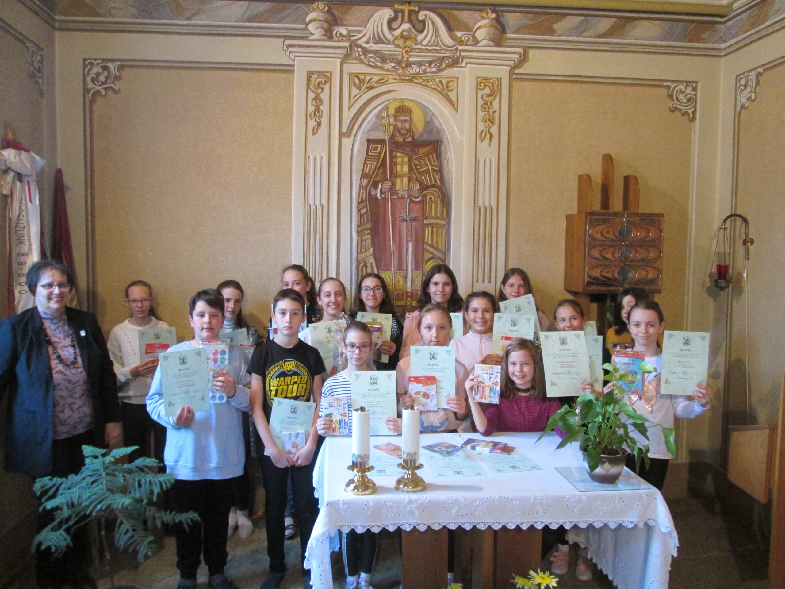 Az ünnepséghez kapcsolódva, művészeti pályázatot is hirdetett iskolánk. A téma Szent István alakja és Szűz Mária, akinek felajánlotta országunkat. Szép számmal érkeztek alkotások, rajzok, üvegfestmények, szobrok. Kategóriánként került sor a díjazásra. Az ünnepélyes átadó az iskola Szent István kápolnájában 2021. november 09-én került sor.