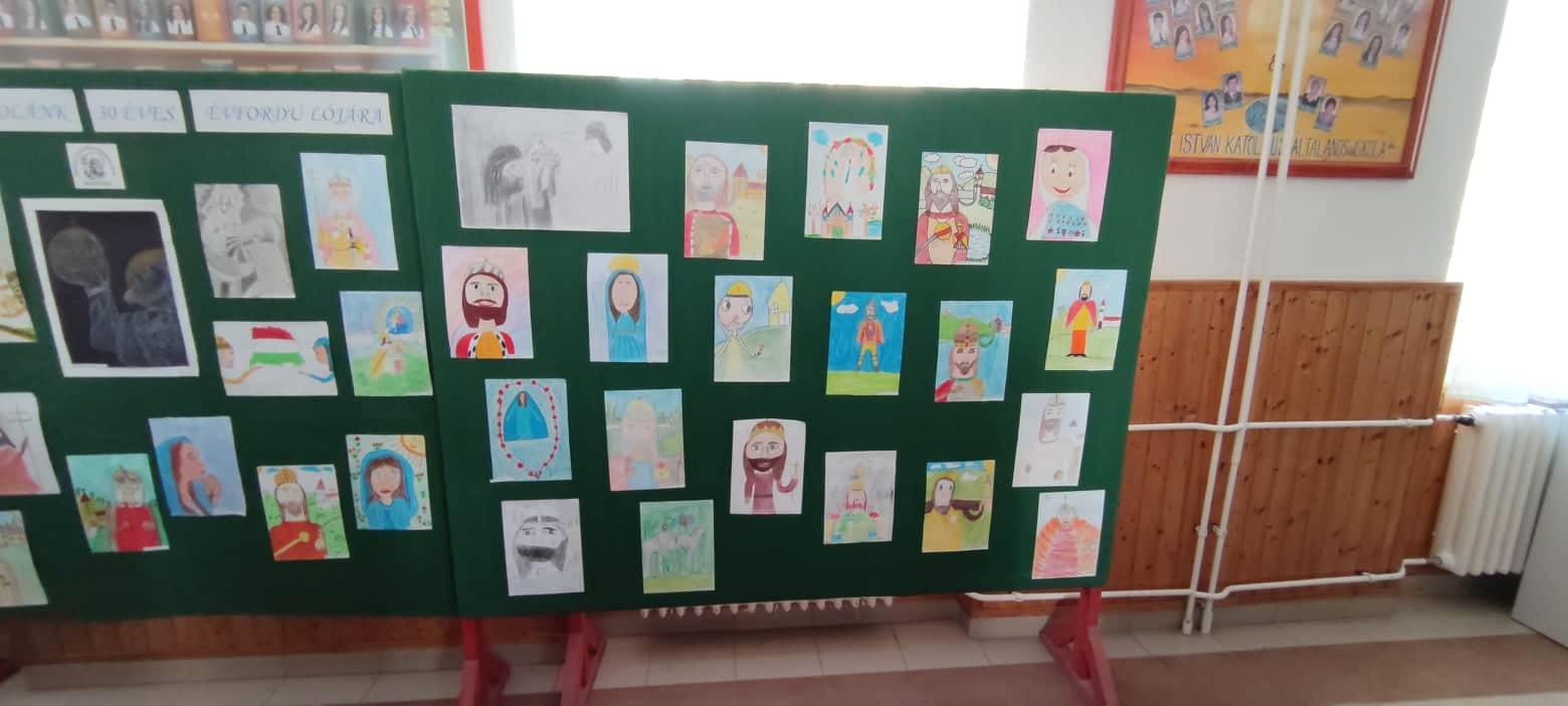 Az alkotásokból, iskolánkban kiállítást rendeztünk, megtekinthetők voltak a művek.